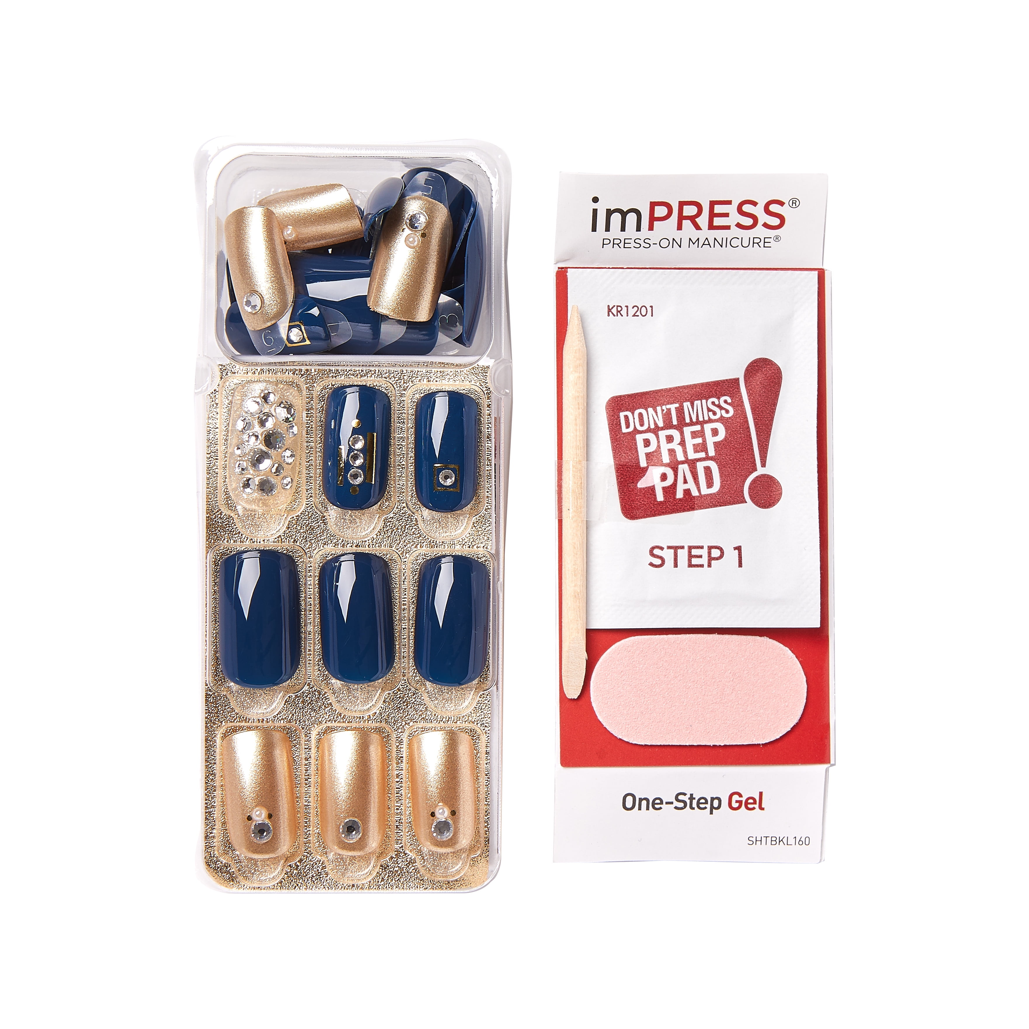imPRESS Press-on Manicure Couture Collection features the ultra-fit nails you love, enhanced with the trendiest, high end designs around. Bigger and bolder stones accentuate these one-step gel nails. Created with innovative technology, the stones and 3D accents stay smoothly and firmly in place for a long lasting wear. No glue needed. Just press on & go! Includes 30 Nails (including 12 accents), Prep Pad, Manicure Stick, Mini File.? Includes 30 Nails (including 12 accents), Prep Pad, Manicure Stick, Mini File.