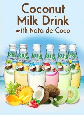 Kuii Coconut Milk Drink with Nata de Coco Variety Pack 9.8 fl oz Bottles, Quantity of 6