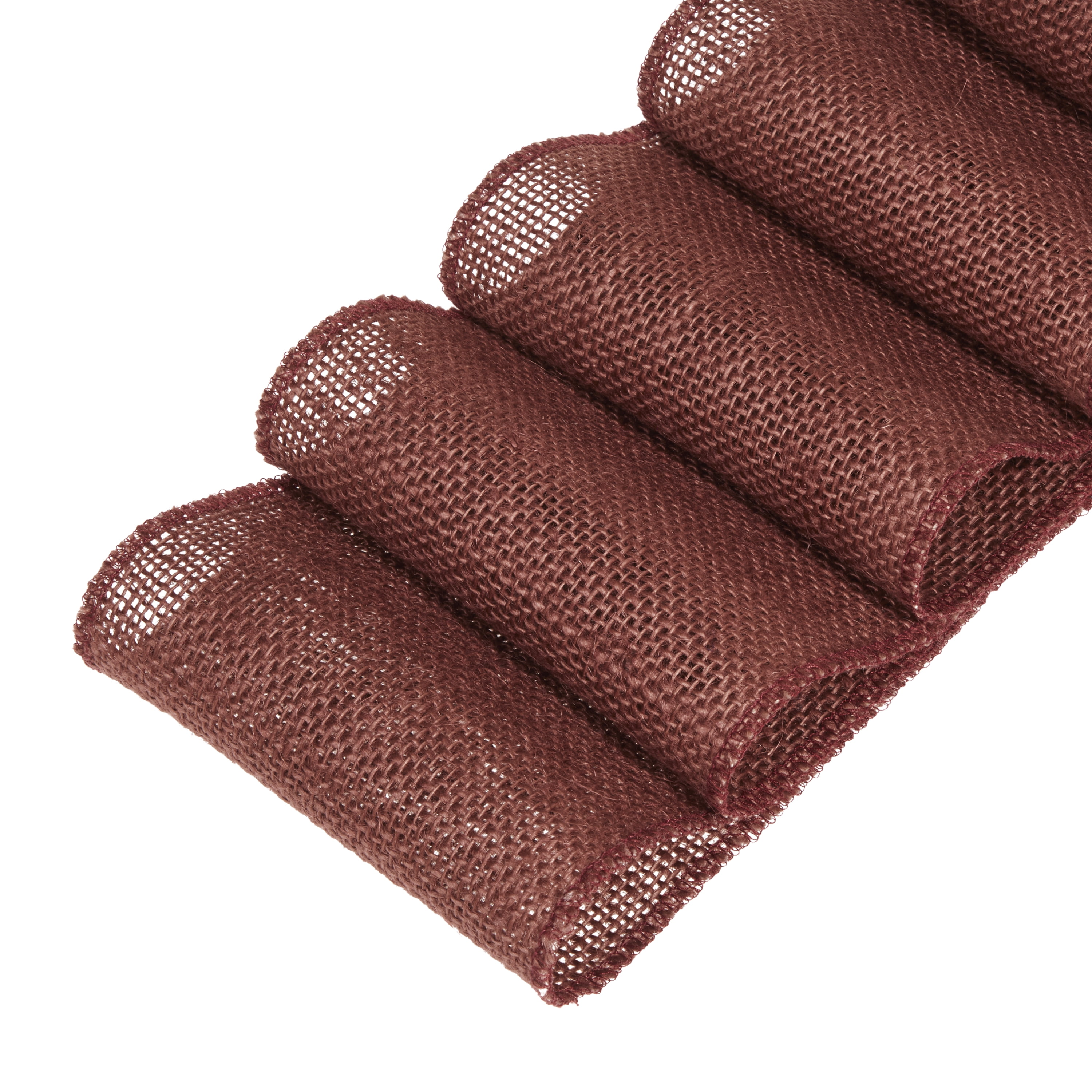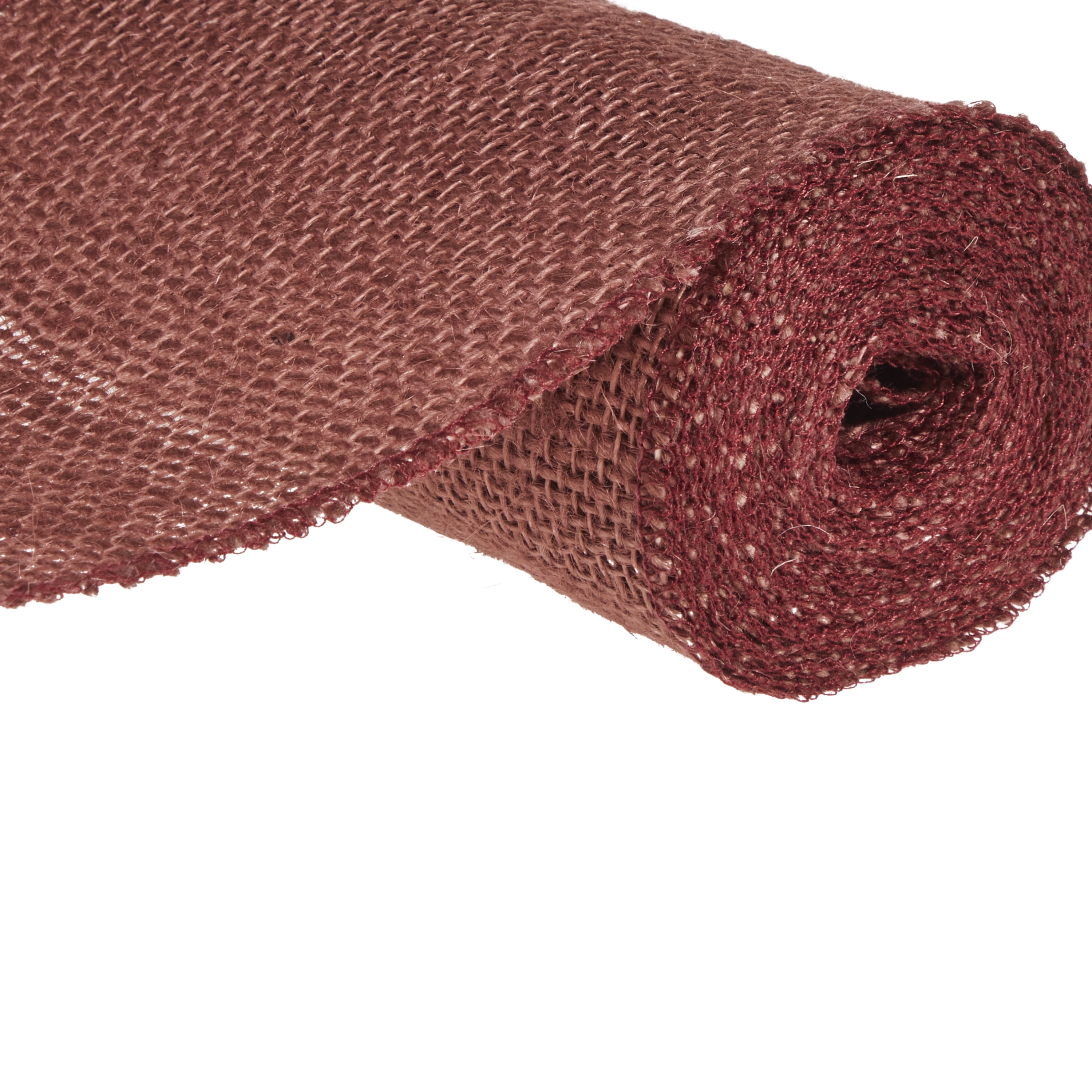 - BURLAP ROLL: Burlap is made of 100% Jute & comes in a rust brown color—fabric roll measures 5-yards long x 6-inches wide with finished edges.