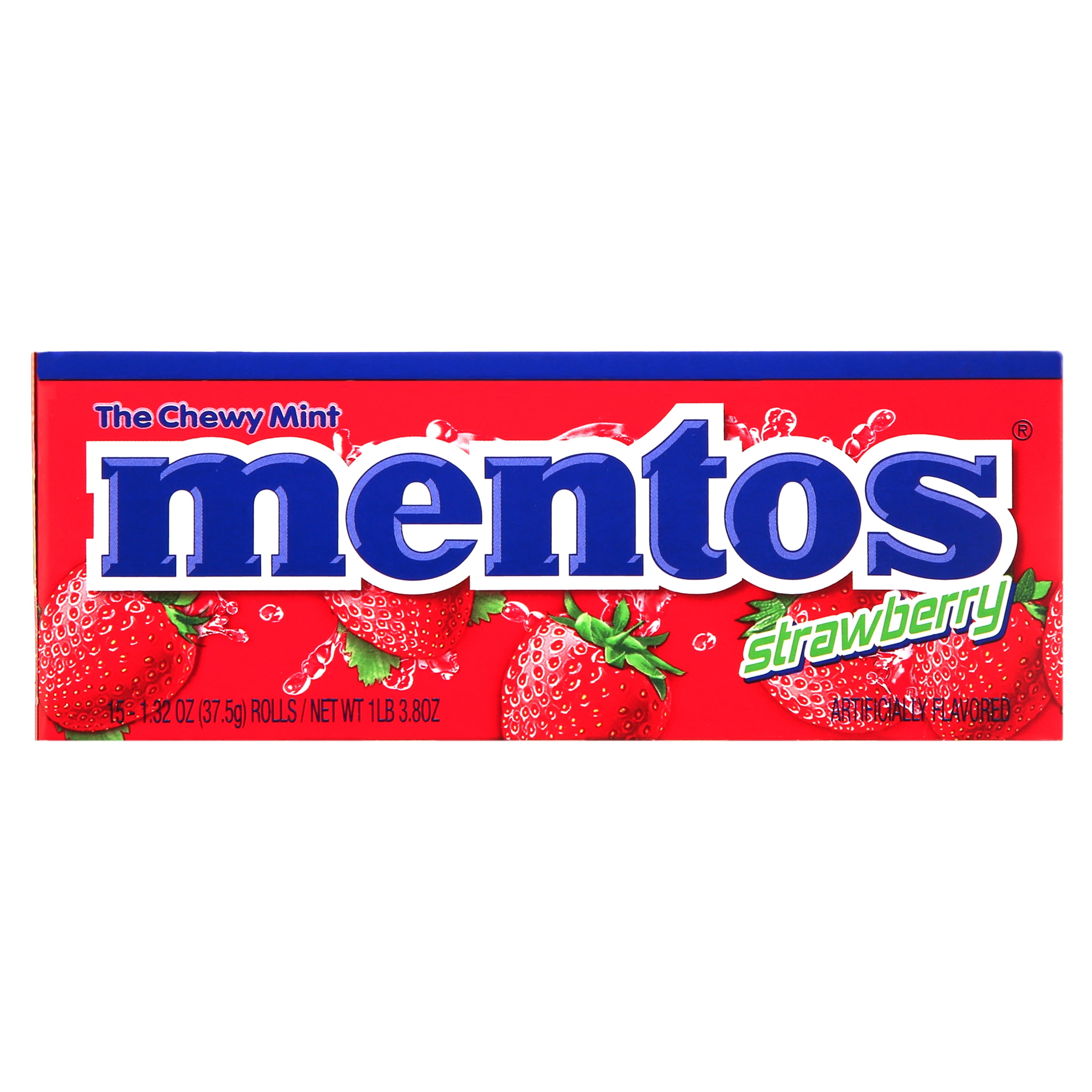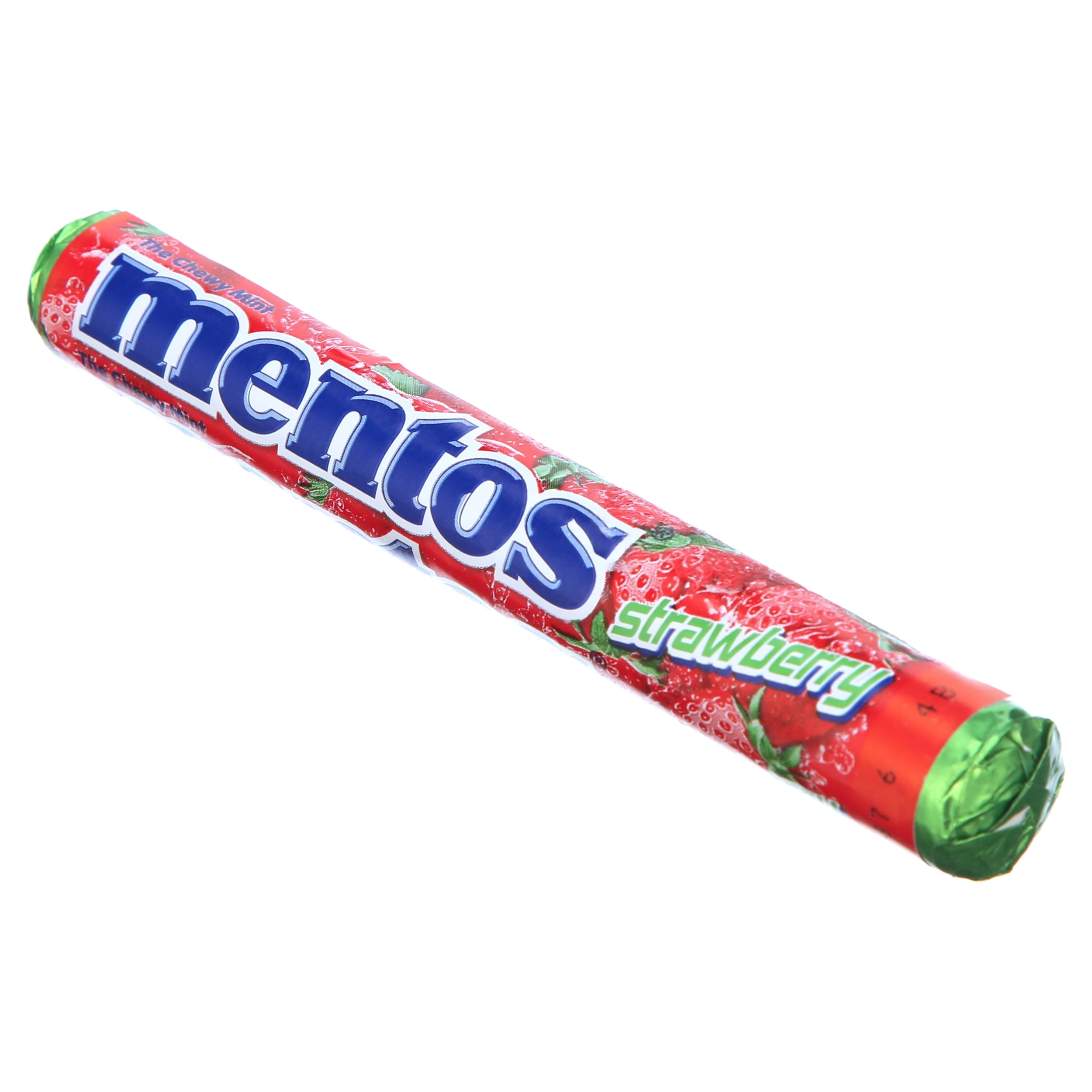- 14 Mentos Strawberry fruit flavored chewy candy mints per each 1.32 ounce roll