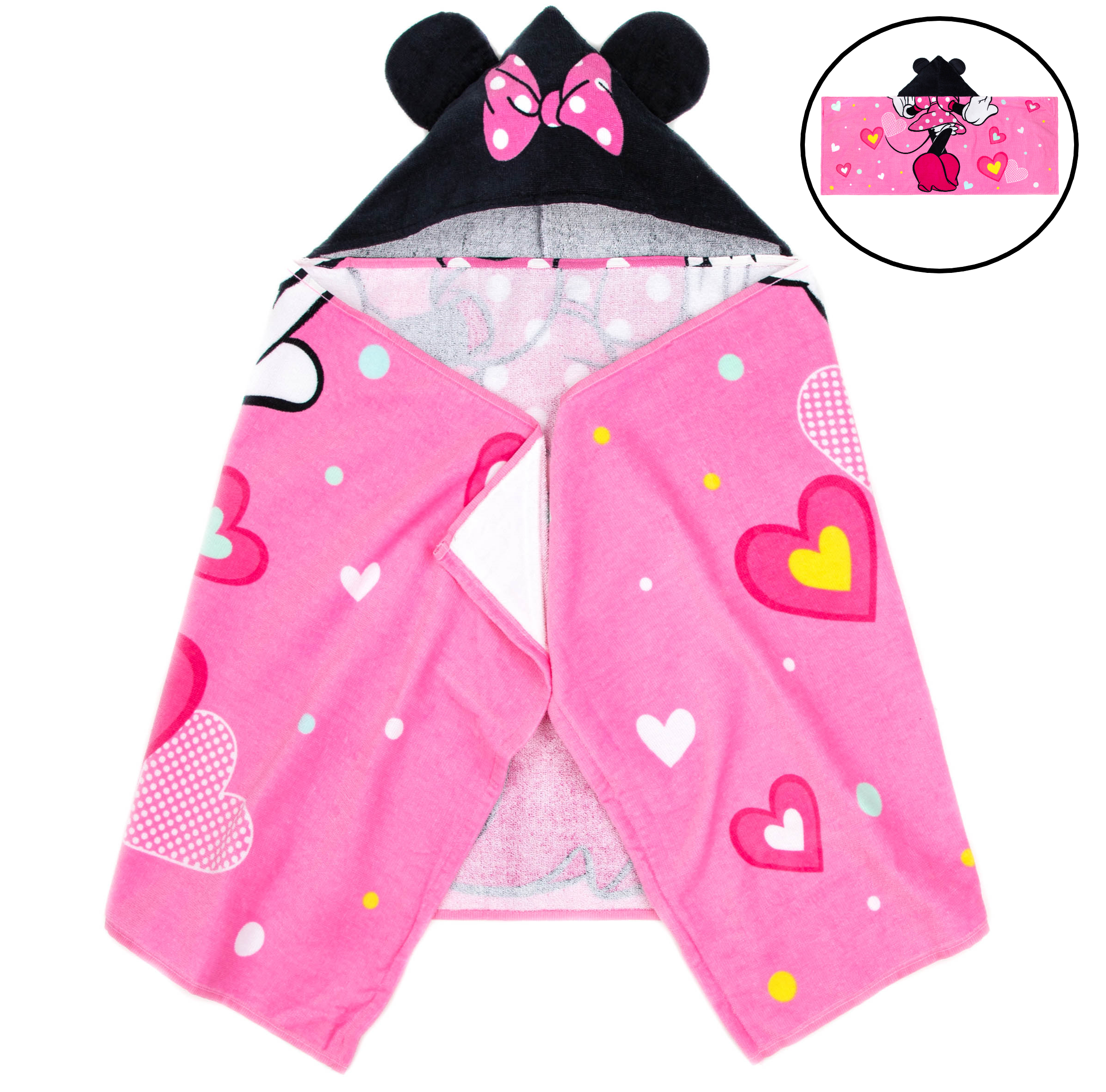 Minnie Mouse Kids Bath Hooded Towel Wrap, 51 x 22, Cotton, Pink, Disney