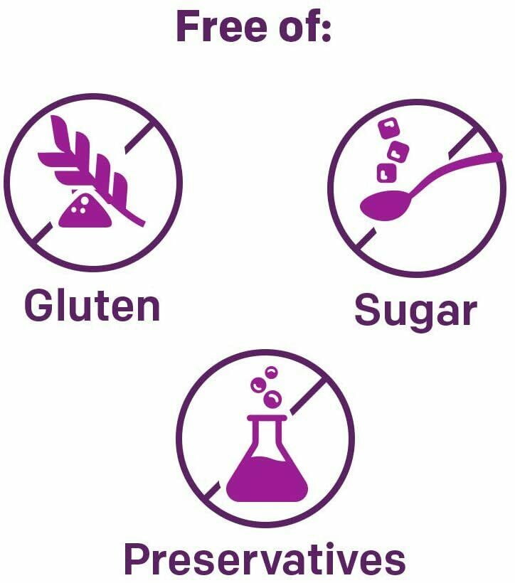 - Does not contain stimulants, preservatives, sugar or gluten
