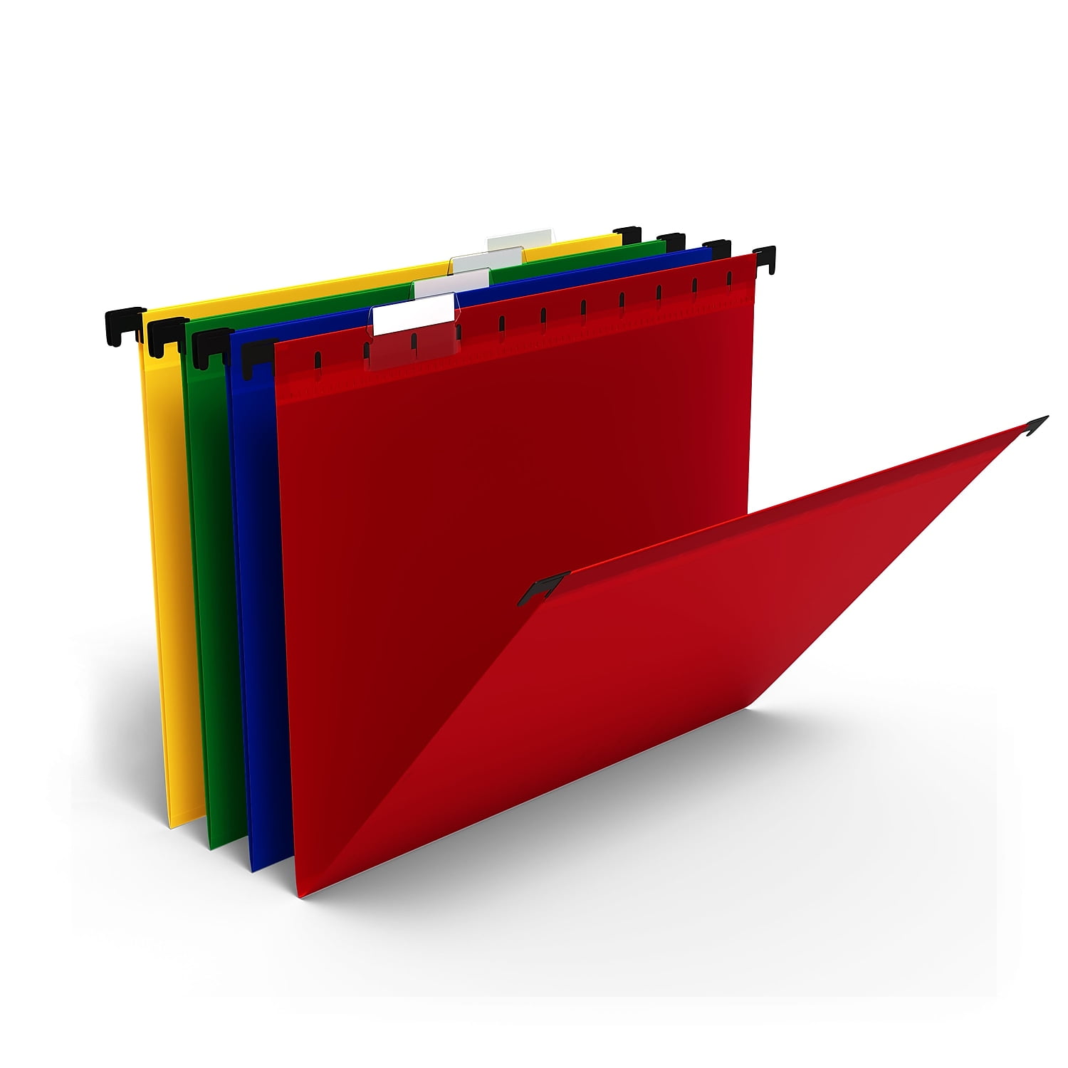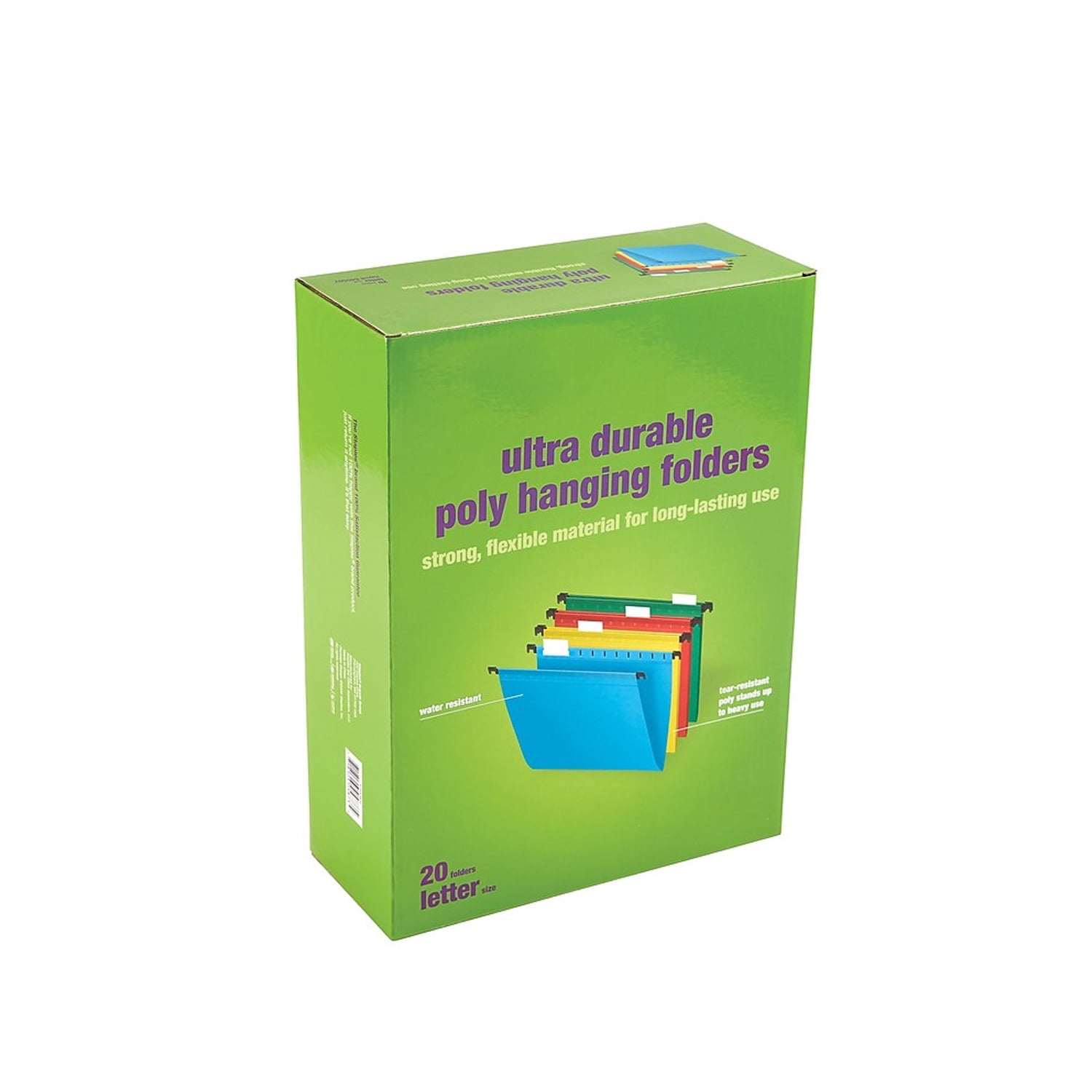 Assign files their own color with these assorted-color five-tab letter-size poly hanging folders. Keep file folders organized with these letter-size hanging folders. Four bright hues make it easy to color-code your paperwork, and the moisture-resistant, tear-resistant construction shields your documents from damage, even when they’re being transported. Each folder features integrated hangers, which work with suspension file frames. With 20 folders in each pack, these poly hanging folders provide an ample supply. Assorted poly folders hold up to wear and tear. Five tab positions allow you to customize your files. Accommodates letter-size papers and files. 20 folders per box. Hanging file folder will fit in a file drawer or desktop filing system. Tabs and inserts included. Assorted poly folders hold up to wear and tear. Five tab positions allow you to customize your files. Accommodates letter-size papers and files. 20 folders per box. Hanging file folder will fit in a file drawer or desktop filing system. Tabs and inserts included Sold as 20/Box.