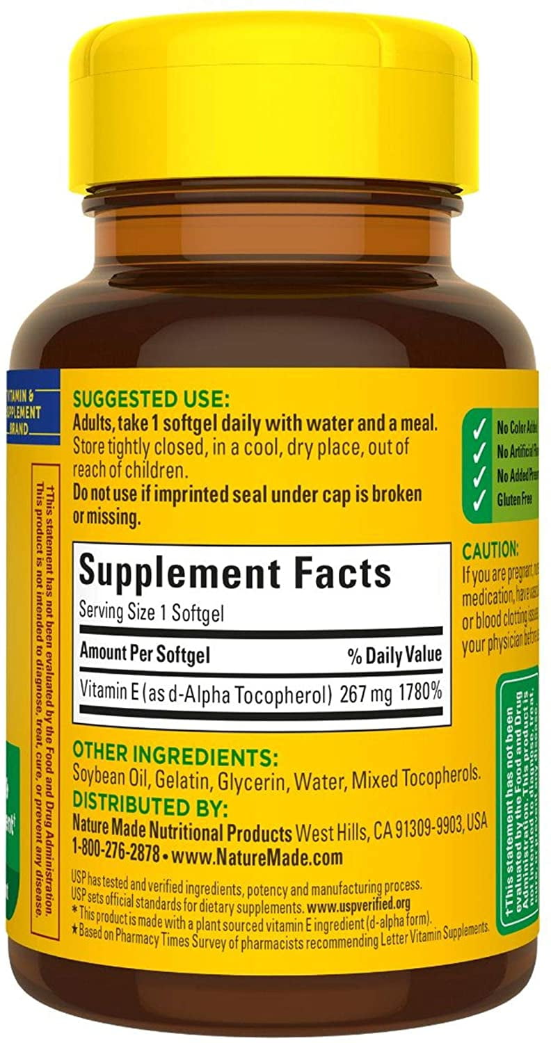 Nature Made dl-Alpha Vitamin E 400 IU Softgels 100 ea (Pack of 2)