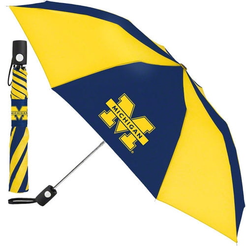 Michigan Wolverines Umbrella – Auto FoldingLarge 42" umbrella that collapses small enough to fit in a small bag or purse. Officially licensed bold team color and logos.