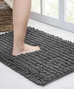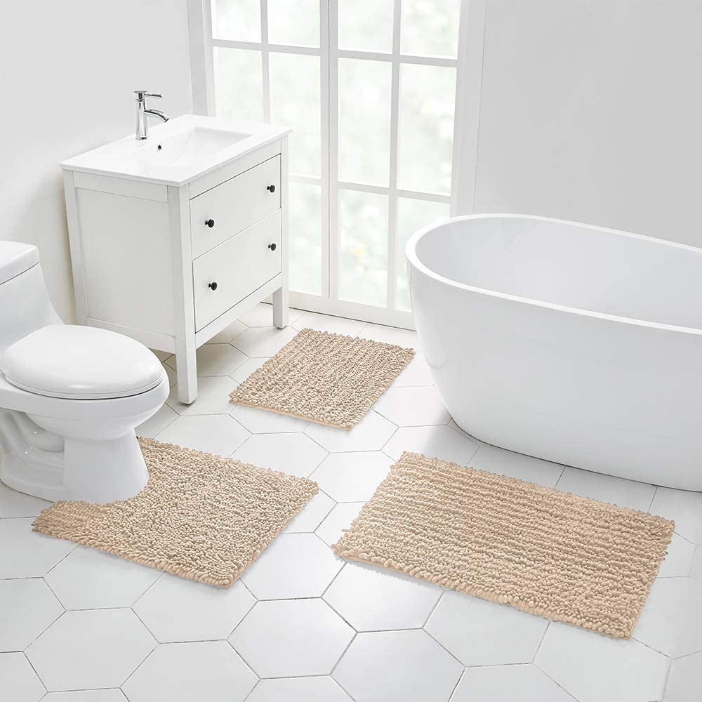 Walensee Non-Slip Bathroom Rugs Chenille Soft Striped Plush Bath Mat, 17′ x 24′, Beige