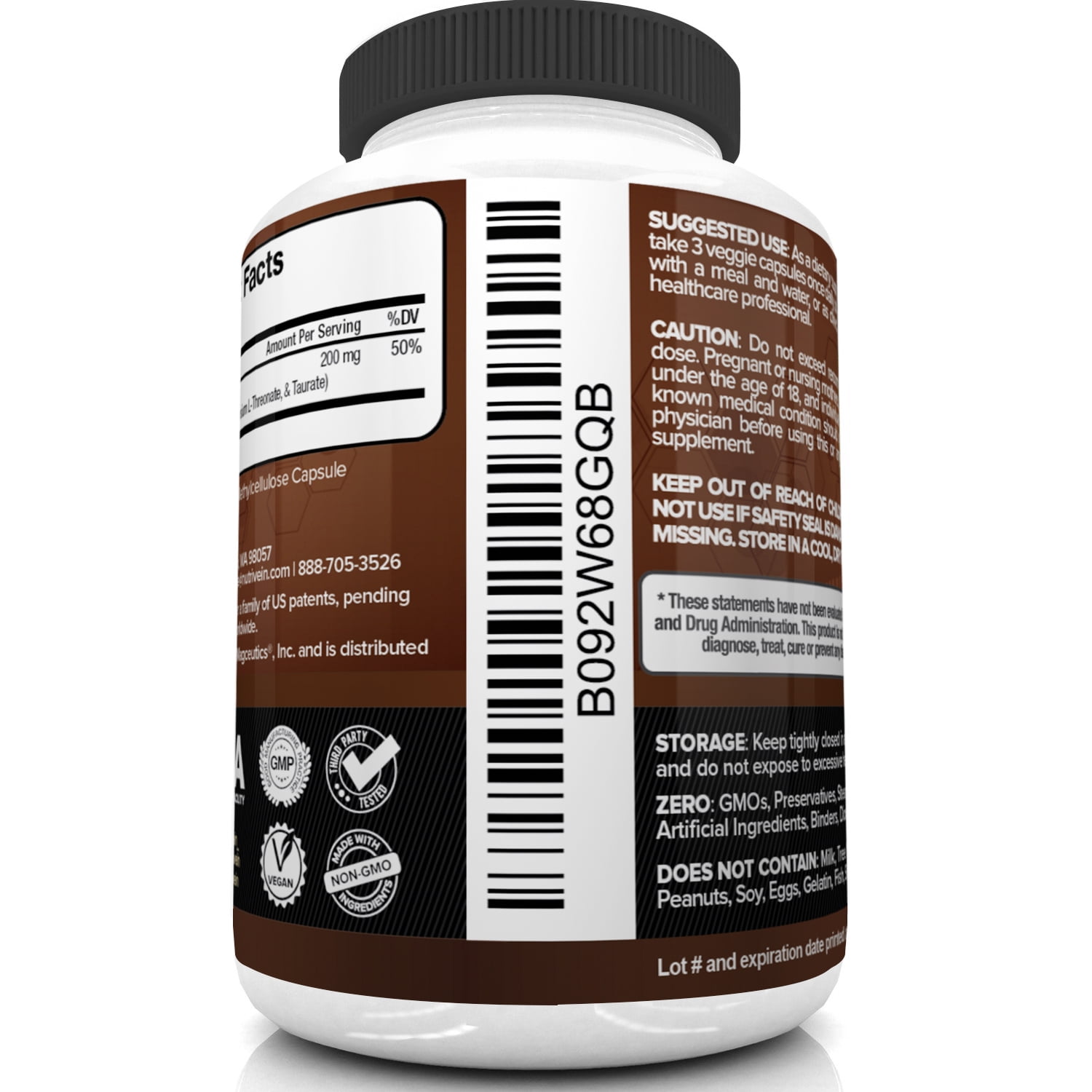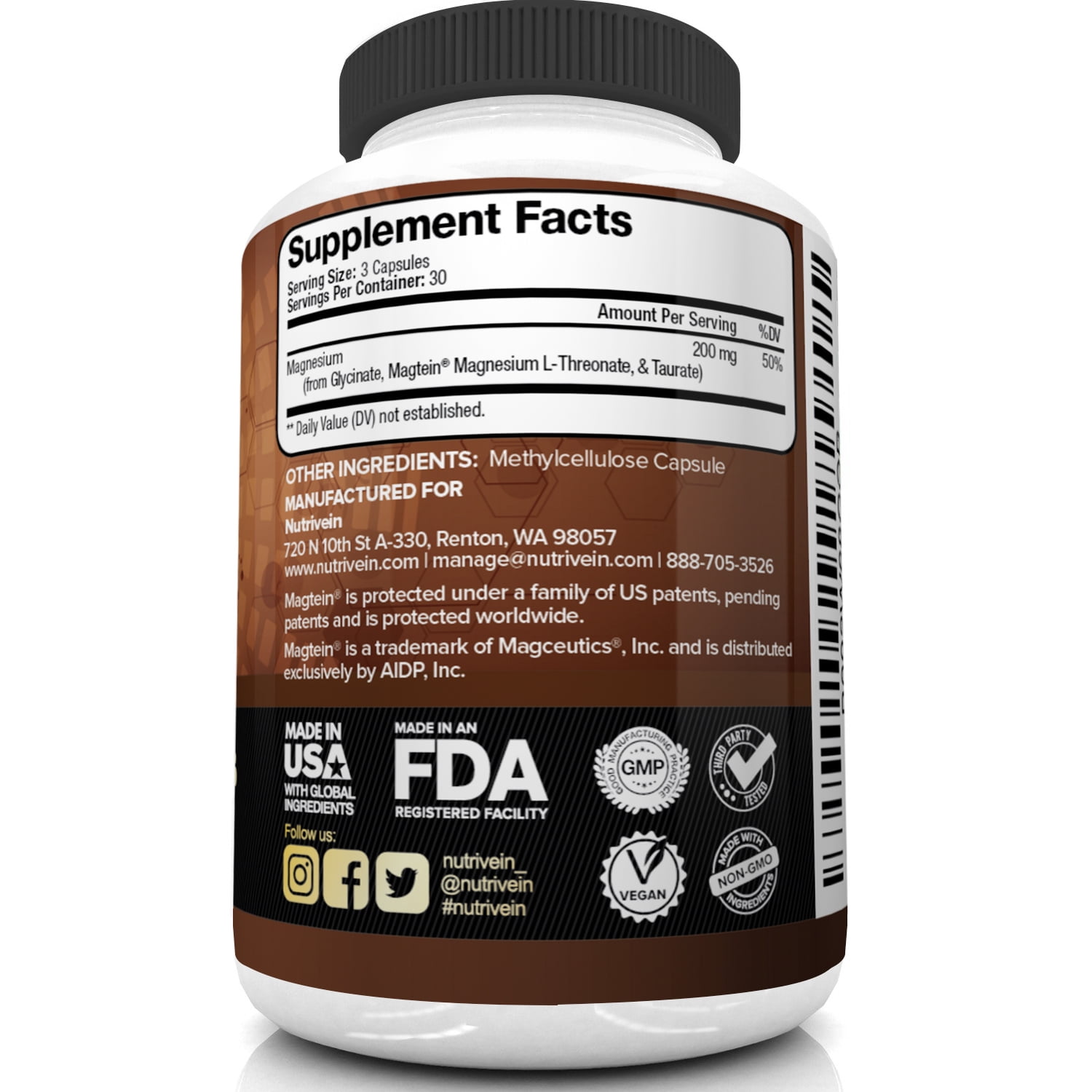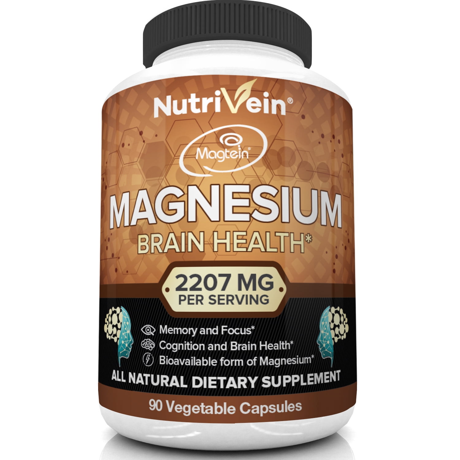 Nutrivein Magnesium L-Threonate (MgT) – 90 Capsules – Boosts Brain Health, Memory & Focus
