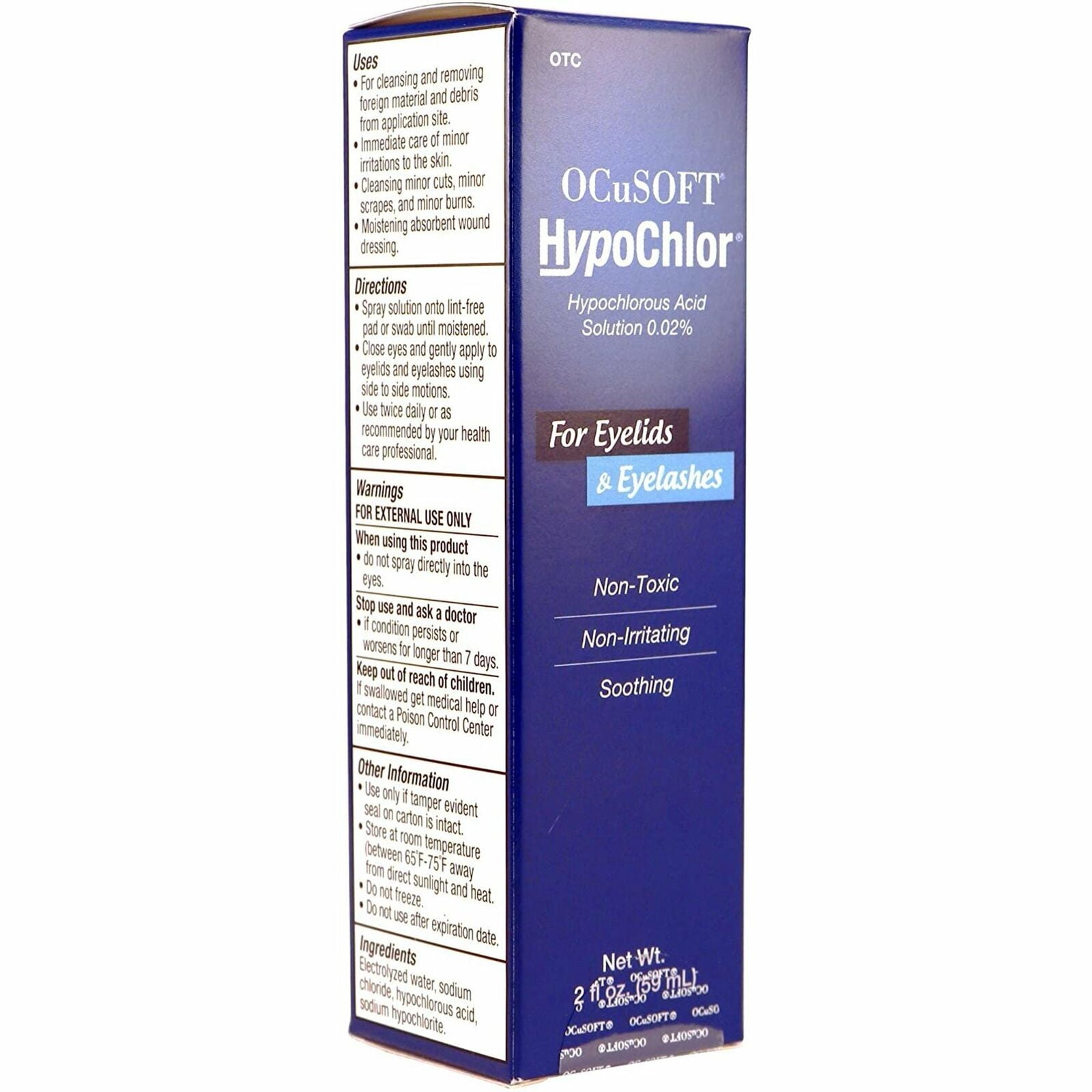 Ocusoft Hypochlorous Acid Solution, Eyelids & Eyelashes Cleanser, All Natural, 2 oz is a product formulated for cleaning and removing foreign material and debris from the eyelid and eyelashes areas. Use against microorganisms, immediate care of minor irritations to the skin, cleanse minor cuts, scrapes or minor burns.Safe and effective. Hypochlorous acid is produced by white blood cells as part of the bodys natural defense mechanism against pathogens and is fast-acting against microorganisms.When combined with a surfactant for removing oil and debris from the eyelids, it can be effective in the most severe cases of eyelid discomfort.Gel provides an added soothing, moist environment to expedite wound healing. #1 doctor recommended brand, 100% natural ingredients for daily use it leaves the treated eyelid area clean and refreshed. Ocusoft Hypochlorous Acid can be used for removing foreign material from eyelid or eyelashes.