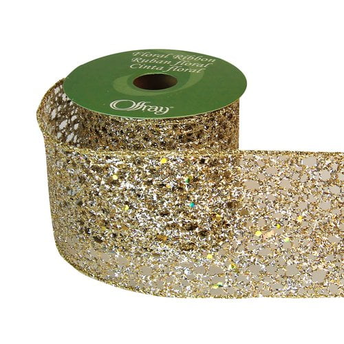 Offray Ribbon, Champagne Glitz 2 1/2 inch Polyester Ribbon for Sewing, Crafts, and Gifting, 9 feet, 1 Each