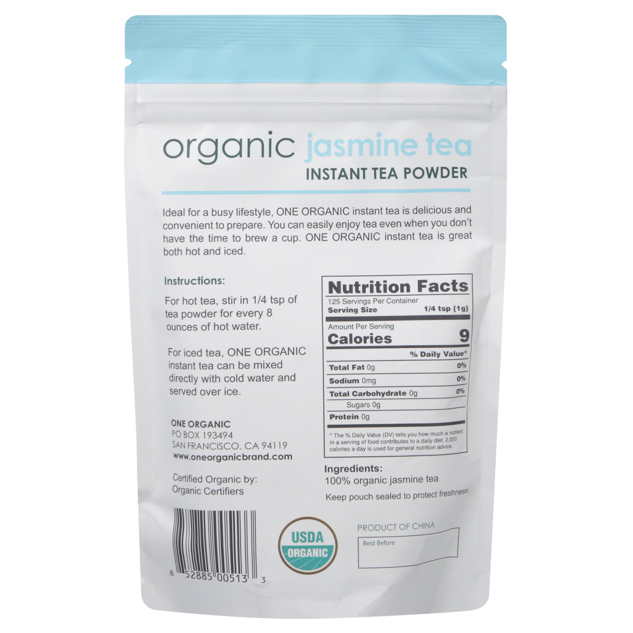 Ideal for a busy lifestyle, ONE ORGANIC instant tea is delicious and convenient to prepare. You can easily enjoy tea even when you don’t have the time to brew a cup. It can be made with either hot or cold water and served as hot tea or iced tea. ONE ORGANIC Jasmine Instant Tea Powder is a green tea enhanced with jasmine flower blossoms to produce a delicate, calming flora fragrance and aroma. Since our tea powders can be instantly soluble, it’s great for adding to drinks, cake glazes, or any of your favorite recipes for a rich tea flavor.