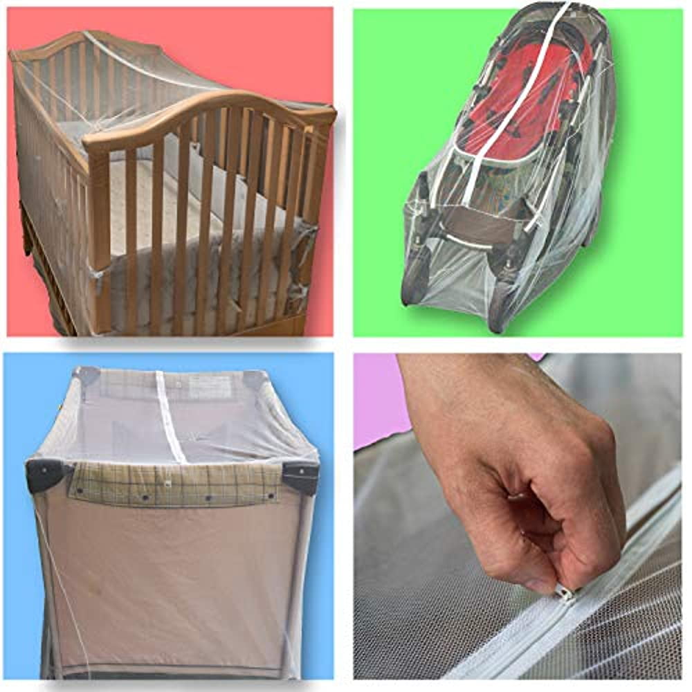 Pack n Play Mosquito Net with Zippers – Fits Baby Crib, Stroller and Playpen – Universal Size Portable Durable Mesh Netting with Elastic – Complete with Storage Bag Bonus