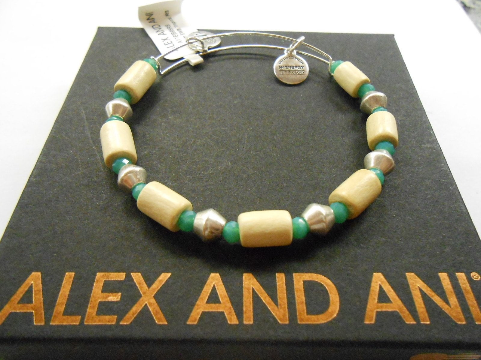 • The brilliant colors of the tropics are beautifully captured in this bangle from Alex and Ani. The blue green beads remind us of the ocean and how wide and vast and incredible it can be. In that ocean, exotic islands offer refuge from the sea, and also a getaway from the everyday norm. The wooden beads serve as a simple, yet perfect accent to the cool colors.