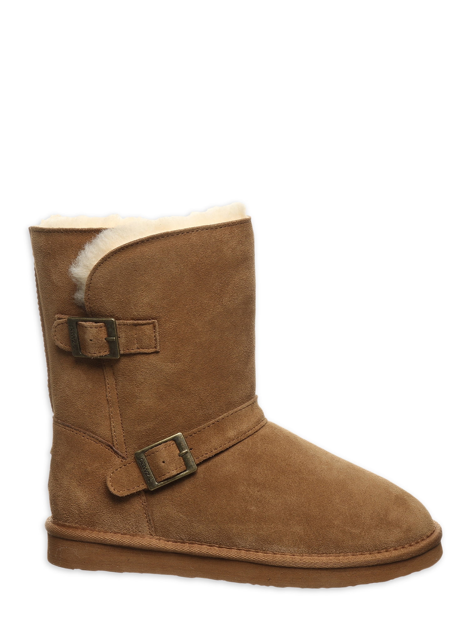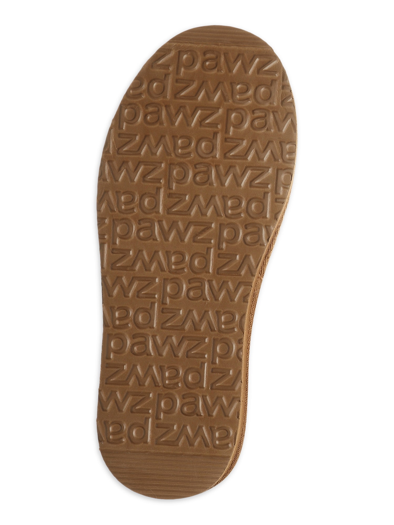 Show off trend-setting style this season in Camille boot by Pawz by Bearpaw. These cute boots feature premium suede uppers that rise mid-calf. Classic round toes and strappy detail with varying buckle accent at ankles to complete the look. This boot will help you fight the cold and pairs perfectly with your favorite tights and leggings or skinny pants and skirts. Wool blend lining will keep the feet warm a pull-on style finish the design of these must-have flat mid-calf boots. Treated with NeverWet® technology helps keeps the water out.