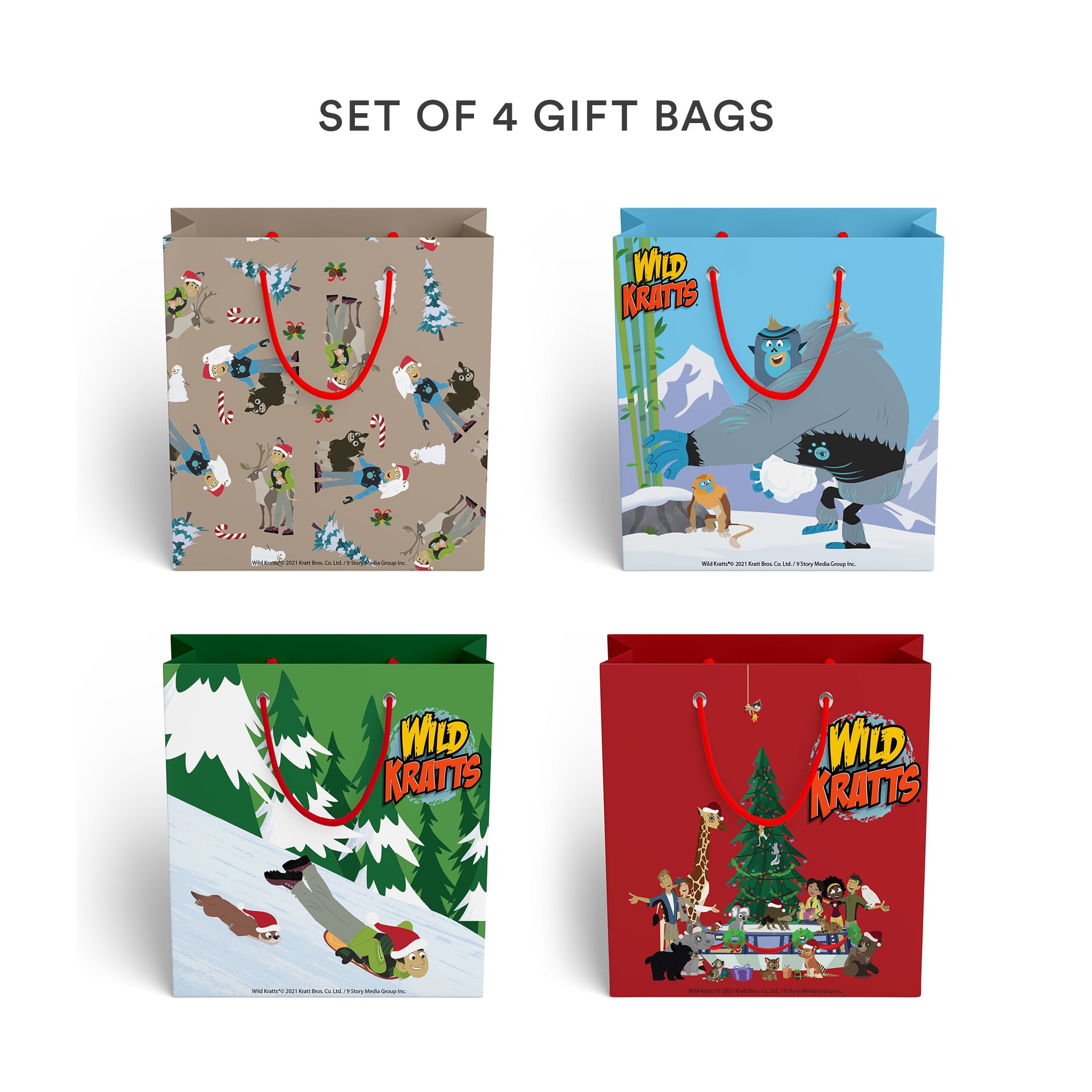 Package up presents with this set of adorable gift bags featuring your little ones’ favorite characters. This set includes four medium-sized gift bags with assorted holiday-themed patterns. This adorable set is perfect for the holidays, winter birthdays and celebrations and more. Multiple coordinating designs add excitement to the holiday gift packaging. Perfect for holding books, clothing or several smaller items.