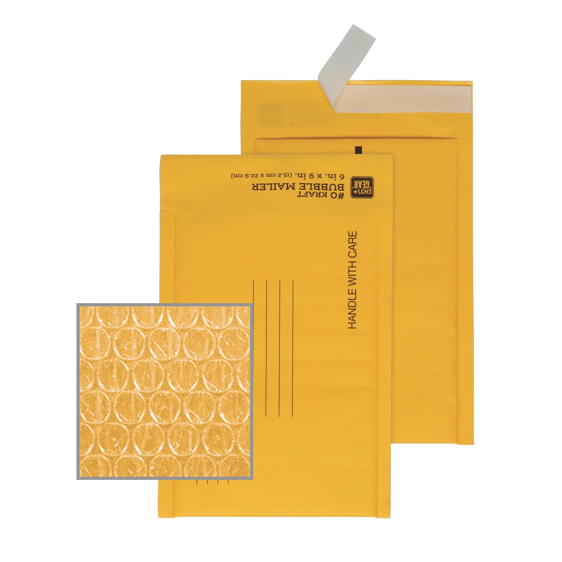 Pen+Gear Kraft Bubble Mailers provide a protective cushioning when shipping fragile items. Air-filled bubbles lining the inside of the mailer help soften the impact of handling during transit, and the Kraft exterior adds an additional layer of durability. Each shipping envelope has a quick and easy Peel & Seal closure—no moisture required. Just pull off strip and press to seal. Keep shipping costs low with lightweight mailers that require less postage than shipping boxes.