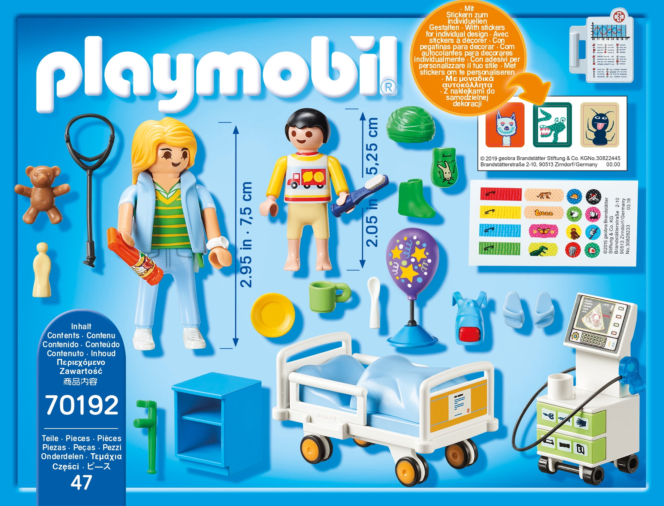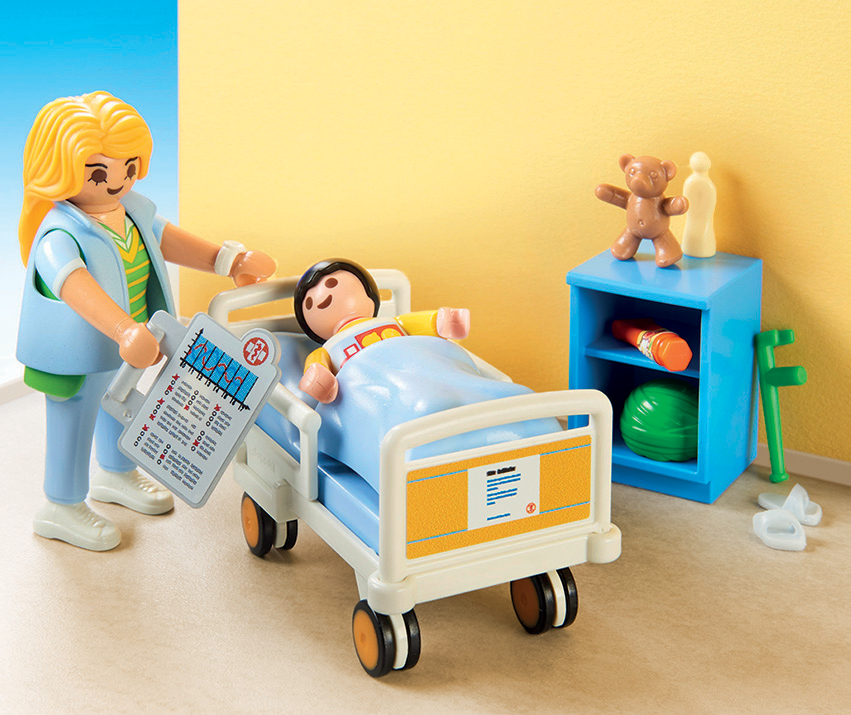 - Set includes two figures, hospital bed, rolling medical monitor and cart, bedside table, bandage stickers, removable cast, and many other accessories