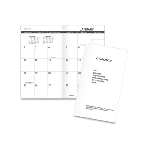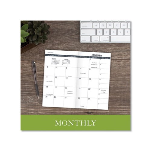 Premium paper resists ink bleed. One month per two-page spread with unruled blocks Monday start past and future months reference. Separate, removable tabbed wirebound telephone/address section separate, removable memo pad. Printed on high-quality paper with superior ink bleed resistance. Size: 6 x 3.5 Page Color/Theme: White Appointment Ruling: Open Scheduling Edition Year: 2021-2022.