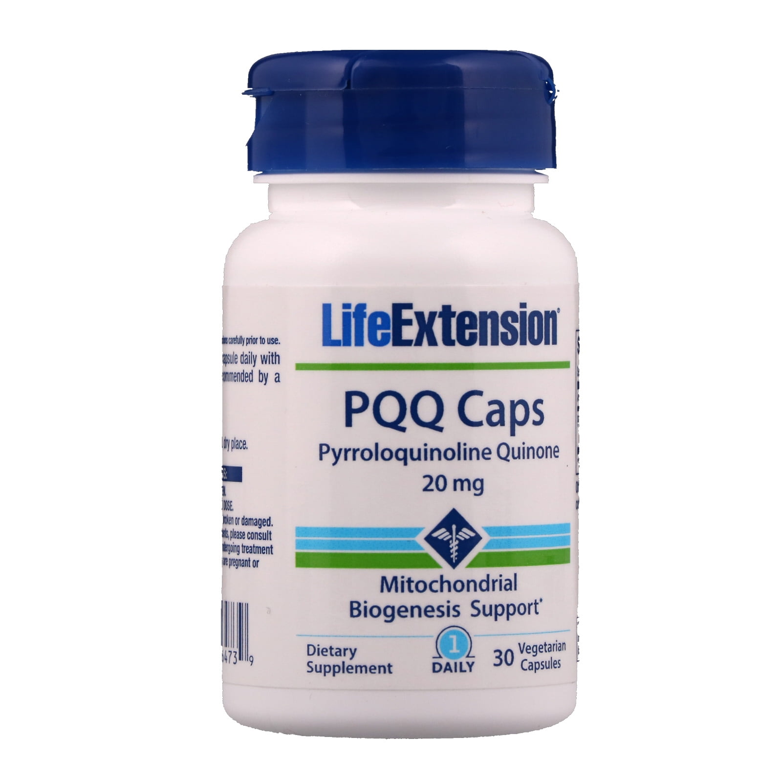 Gluten Free 1 Daily Non-GMO LE Certified Mitochondrial Biogenesis Support Dietary Supplement Your mitochondria supply energy to the cells throughout your body. But as you age, your number of functional mitochondria declines. PQQ (pyrroloquinoline quinone) can support the growth of brand-new mitochondria, which encourages healthy and youthful cellular energy for your entire body. PQQ supports mitochondrial biogenesis, which is key to maintaining youthful cellular energy production. PQQ Caps Benefits Promotes the growth of new cellular mitochondria Encourages youthful cellular energy levels Provides powerful cellular antioxidant protection Helps support delicate mitochondrial DNA Supports heart health, cognitive health and more Your mitochondria supply energy to the cells throughout your body. But as you age, your number of functional mitochondria declines. PQQ (pyrroloquinoline quinone) can activate genes that promote the growth of brand-new mitochondria, which promotes cellular energy for your entire body. Mitochondria are as fascinating as they are essential: They have their own set of DNA. Even the growth of new mitochondria has a name: “mitochondrial biogenesis.” Mitochondrial biogenesis is key to maintaining youthful cellular energy production. PQQ also supports mitochondrial biogenesis and encourages healthy cellular energy levels in 3 distinct ways: Mitochondrial DNA & antioxidant protection The enormous amount of cellular energy generated within mitochondria also exposes them to constant free radical activity. Fortunately, PQQ is a potent antioxidant, offering powerful free radical protection and maximum support for cellular energy production at the same time. Mitochondria possess their own DNA, which is different from the DNA found in a cell’s nucleus. Unfortunately, mitochondrial DNA is more vulnerable to mutations than nuclear DNA. PQQ’s antioxidant potency and favorable gene expression profile help to support delicate mitochondrial DNA against oxidation. Favorable gene expression PQQ activates genes that promote the formation of new mitochondria. PQQ also beneficially interacts with genes directly involved in mitochondrial health. These same genes also support healthy sugar and fat metabolism, youthful cellular proliferation and more. Other potential whole-body health benefits PQQ may support quality, restful sleep, heart health and cognitive function, by itself and in combination with CoQ10. Plus, when taken with CoQ10, PQQ promotes memory, attention and cognition in maturing individuals.Life Extension PQQ Caps with BioPQQ 20 mg. – 30 Vegetarian Capsules Life Extension has identified a purified, highly potent form of PQQ from Japan that is produced through a unique fermentation process. The result is BioPQQ, the highest quality PQQ available on the market today. Life Extension PQQ Caps with BioPQQ Pyrroloquinoline Quinone is used as support for mitochondrial Biogenesis. PQQ is an essential nutrient, meaning that your body cannot make it on