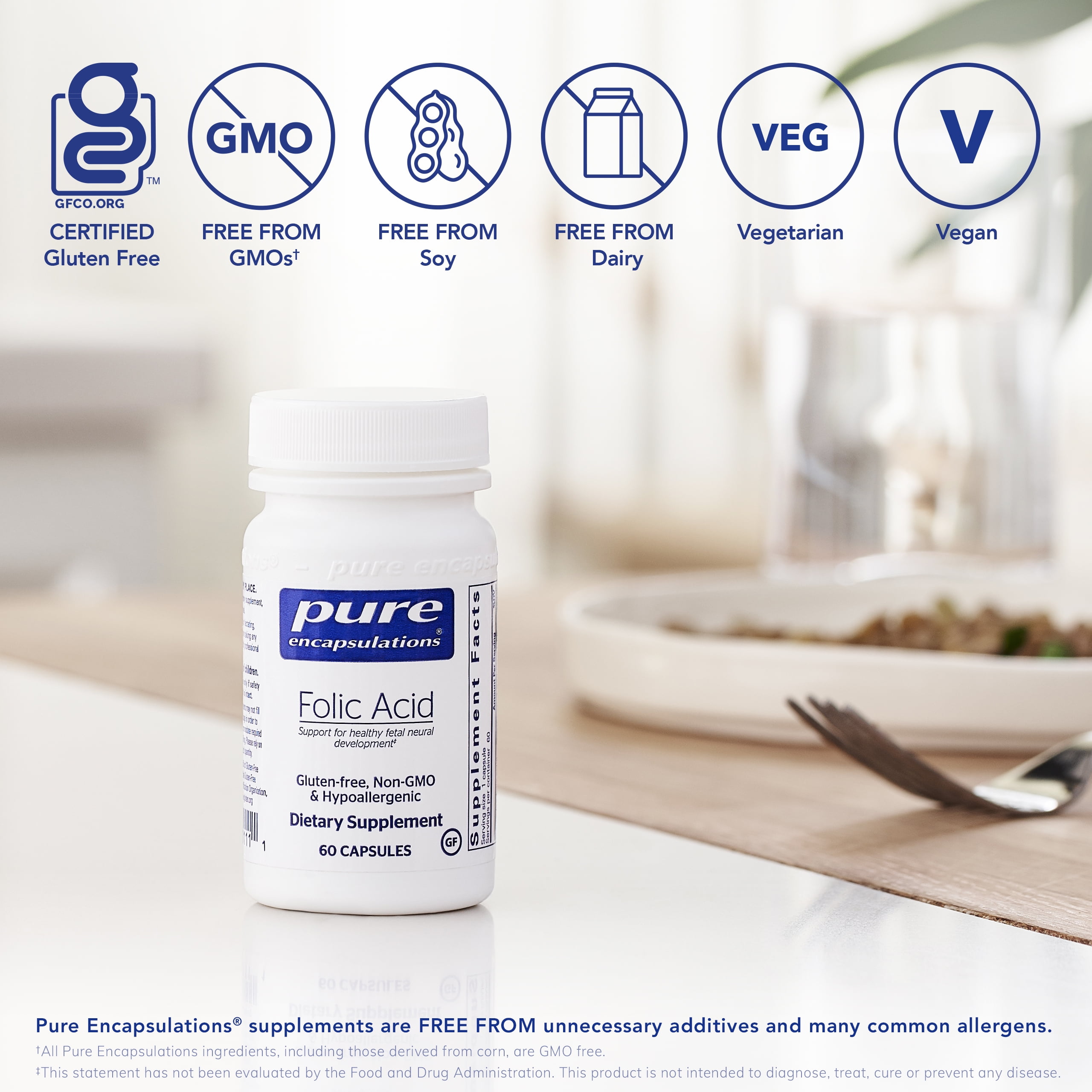 - *These statements have not been evaluated by the Food & Drug Administration. These products are not intended to diagnose, treat, cure or prevent any disease. Please contact your healthcare professional immediately if you experience any unwanted side effects. The information contained herein is for informational purposes only and does not establish a doctor-patient relationship. Please be sure to consult your physician before taking this or any other product. †All Pure Encapsulations ingredients, including those derived from corn, are GMO free. We obtain statements from each of our suppliers certifying that the ingredients do not contain GMOs. For some nutrients, we conduct PCR testing to confirm the absence of genetically modified material.