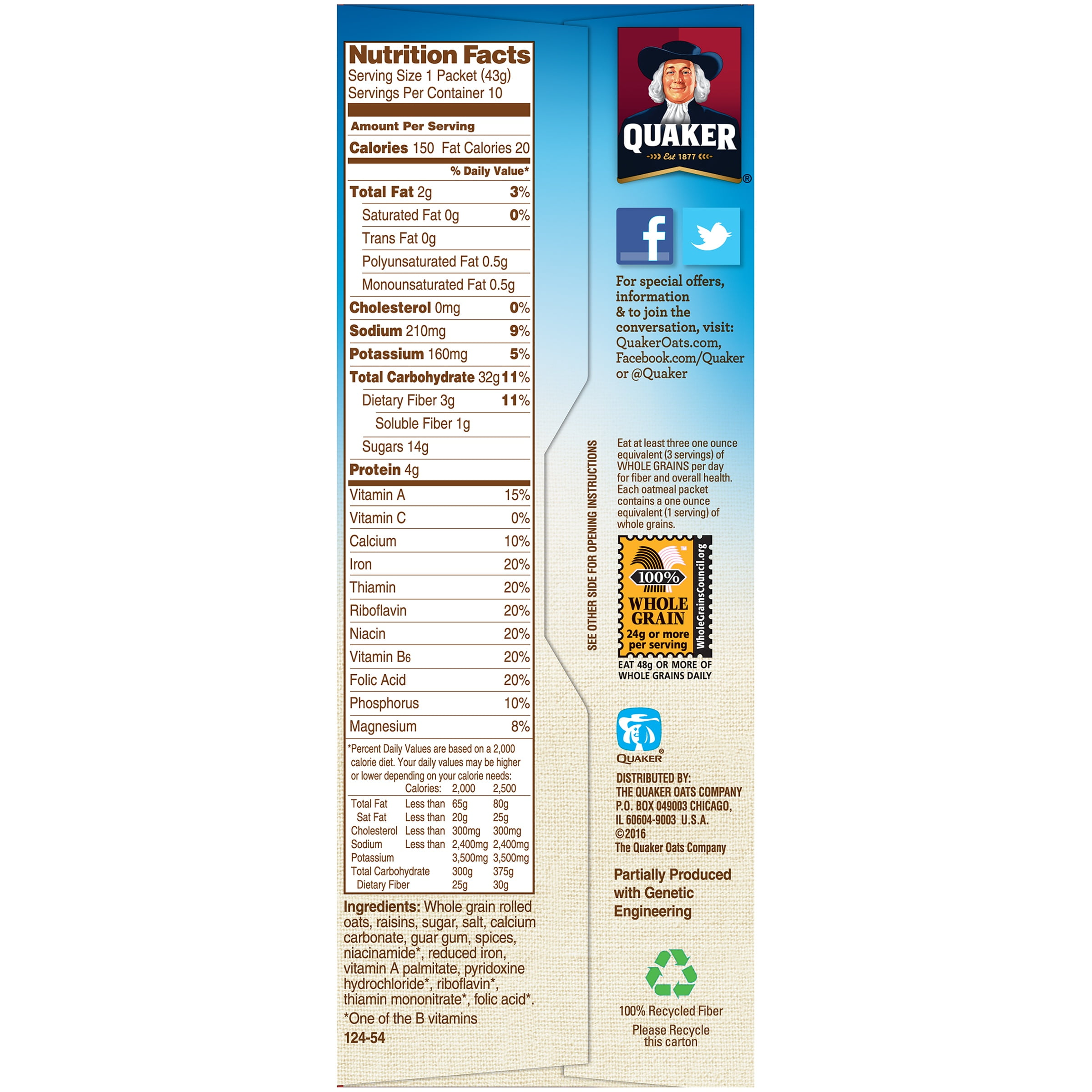Quaker Instant Oatmeal Raisins & Spice is a scrumptious way to begin your day. The hearty goodness of Quaker Oats, the chewy sweetness of raisins and an enticing blend of spices, Quaker Instant Oatmeal Raisins & Spice is more than a mouth-watering way to start your day, it’s the goodness of Quaker Oats.