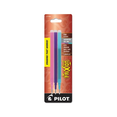 Refill for Pilot FriXion FriXion Ball, FriXion Clicker and FriXion LX Gel Pens, Fine Point, Assorted Ink Colors, 3/Pack
