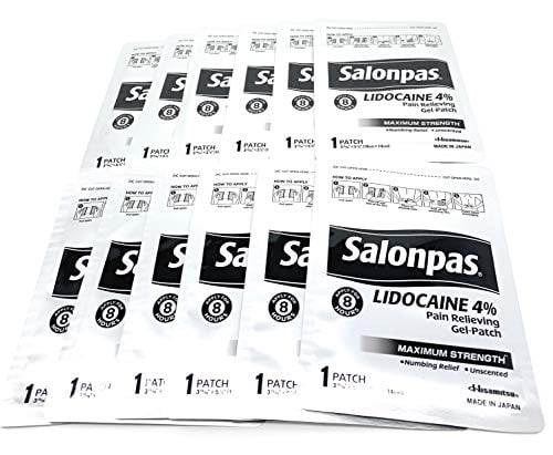 - Topical anesthetic patches, like Salonpas LIDOCAINE 4% Pain Relieving Gel-Patches, are a great alternative to gels or creams. Patches are portable, convenient and apply without any mess. When applied properly, Salonpas patches stay in place and can be worn easily under clothing.
