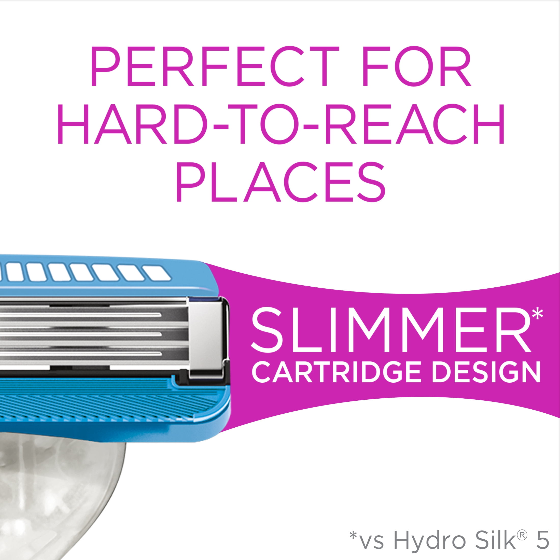 Schick Hydro Silk 3 Women’s Razor Blade Refills are designed to be used with the Schick Hydro SIlk 3 Women’s Razor. Each cartridge contains a water-activated Hydra-Boost serum with aloe and coconut butter for a smooth glide. Three curve-sensing blades and slim pivoting head of the razor provide a comfortable, close shave on underarms, legs, and bikini area.
