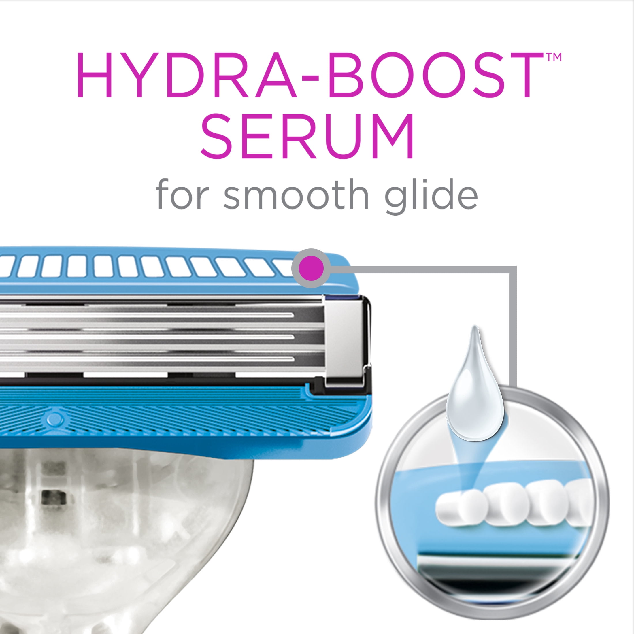 - Hydra-Boost serum with aloe and coconut butter for smooth glide