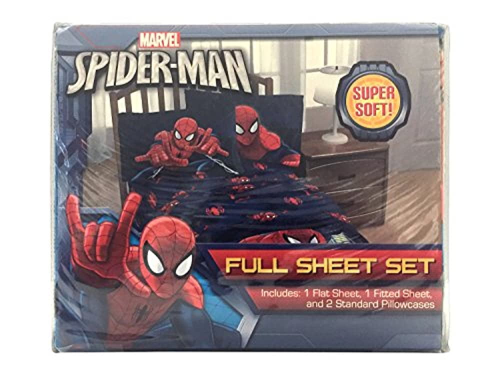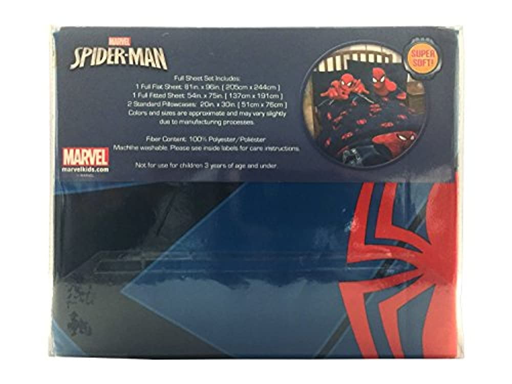 - SUPER SOFT & FUN DESIGN – Super soft full sized sheet set includes (1) fitted sheet 54" inch x 75" inch, (1) flat sheet 81" inch x 96" inch, and (2) standard pillow cases 20" inch x 30" inch. With it’s vibrant colors and cozy feel, this Spiderman sheet set is sure to make bedtime fun. Bedding features your favorite superhero.