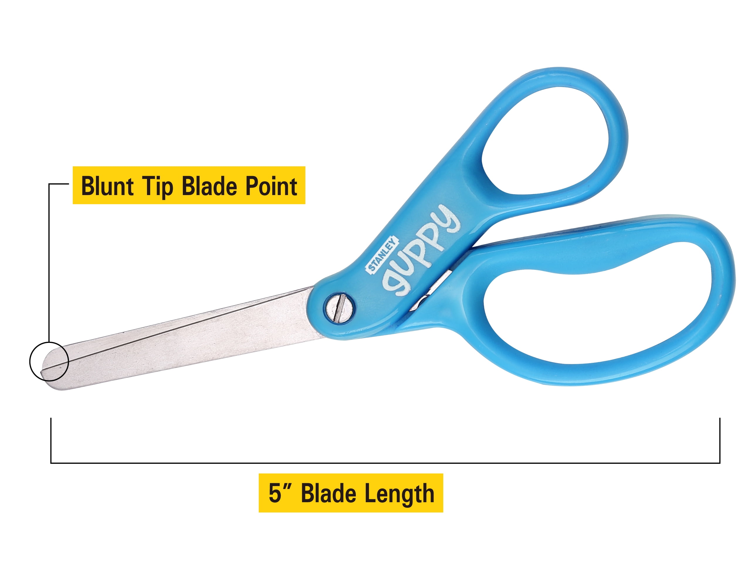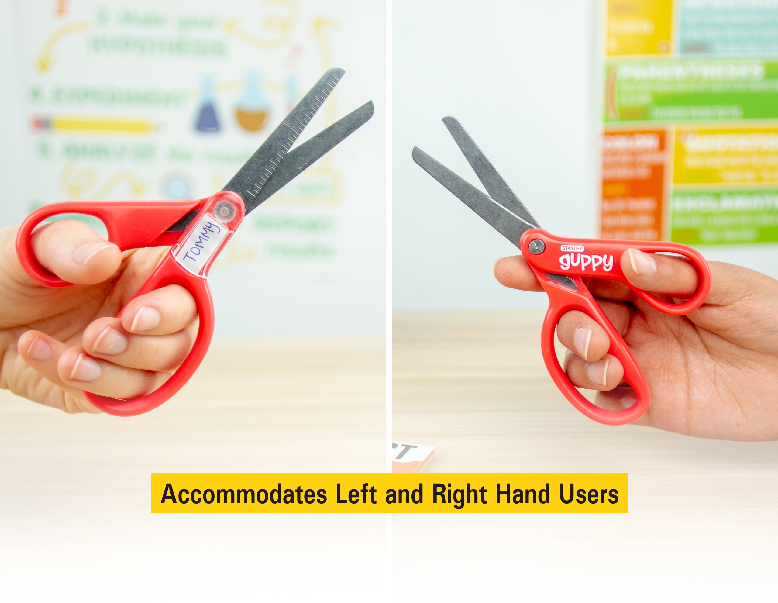 The kid-safe scissors that feature a steel blade angle and blunted tips that protect young children of ages 4 plus while easily cutting through arts and crafts materials, and paper. Perfect for school, home or the classroom, these round tip scissors work for both left handed and right handed children.