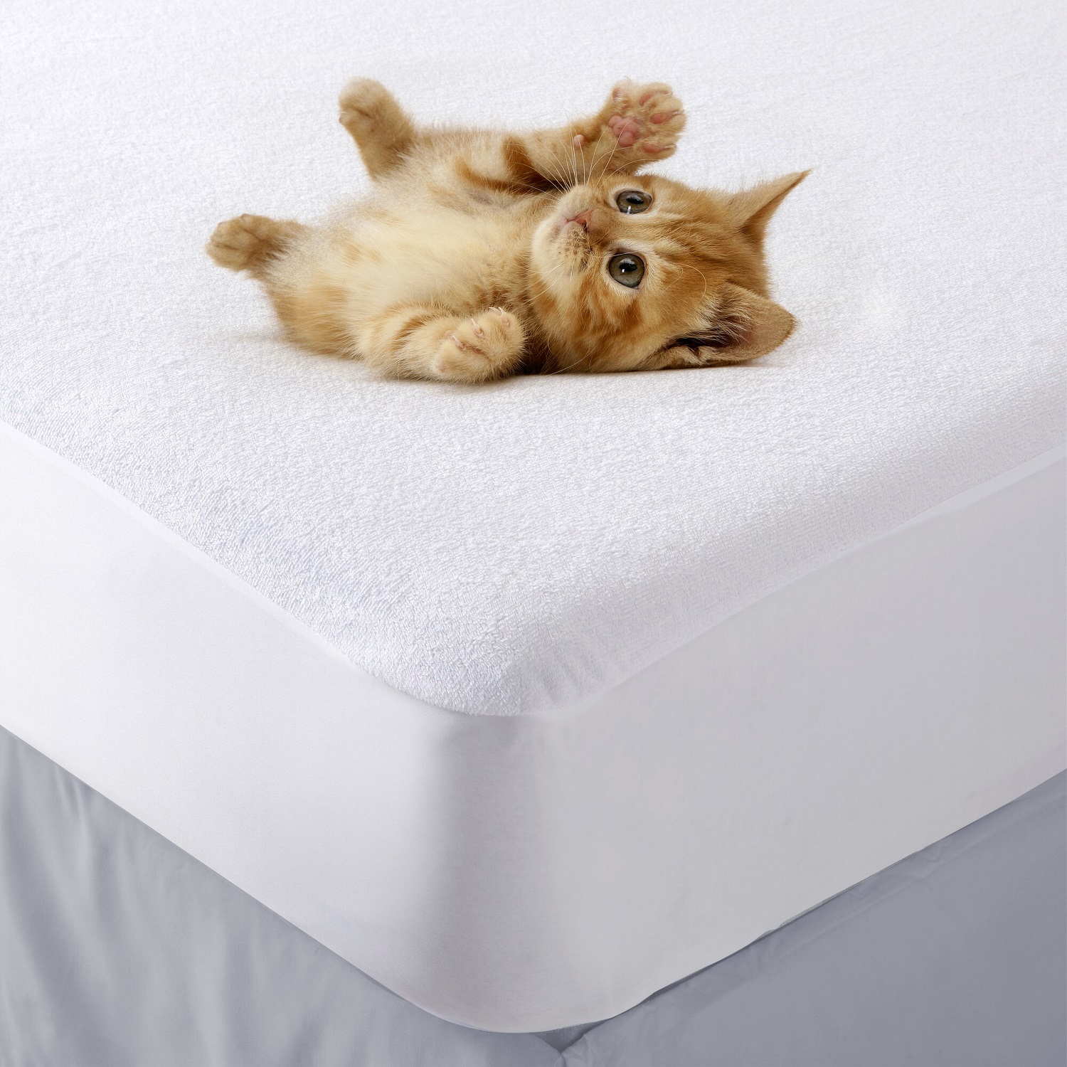 Extend the life of your mattress with Bellbrook Waterproof and Hypoallergenic Cotton Mattress Protector. The hypoallergenic Cotton Terry platform provides a comfortable sleeping surface while the sturdy Microfiber base forms a waterproof barrier to protect your mattress against unwanted stains and moisture. The secure, snug fit of this fitted sheet style cover is elasticized to fit any mattress up to 22" thick (8" thick for any baby mattress) and is completely noiseless thanks to its vinyl-free construction. This machine washable mattress protector is as easy to clean as it is to use.