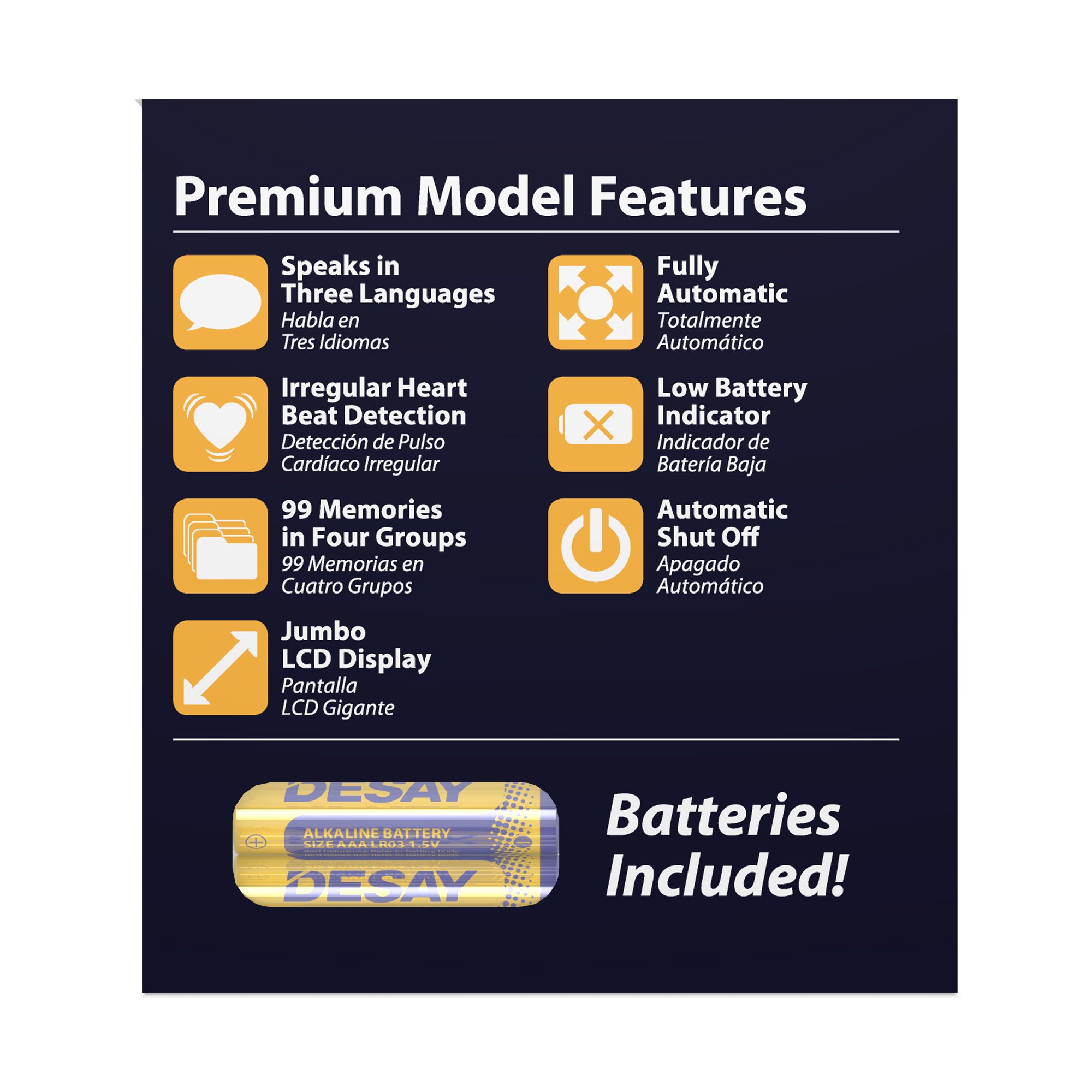 Allows you to measure blood pressure on the go! One Touch Operation. Irregular Heartbeat Detector. Auto-Off Power Saving Feature. Large Memory. Easy-To-Use. Portable. ITEM CANNOT BE RETURNED IF PACKAGE HAS BEEN OPENED.