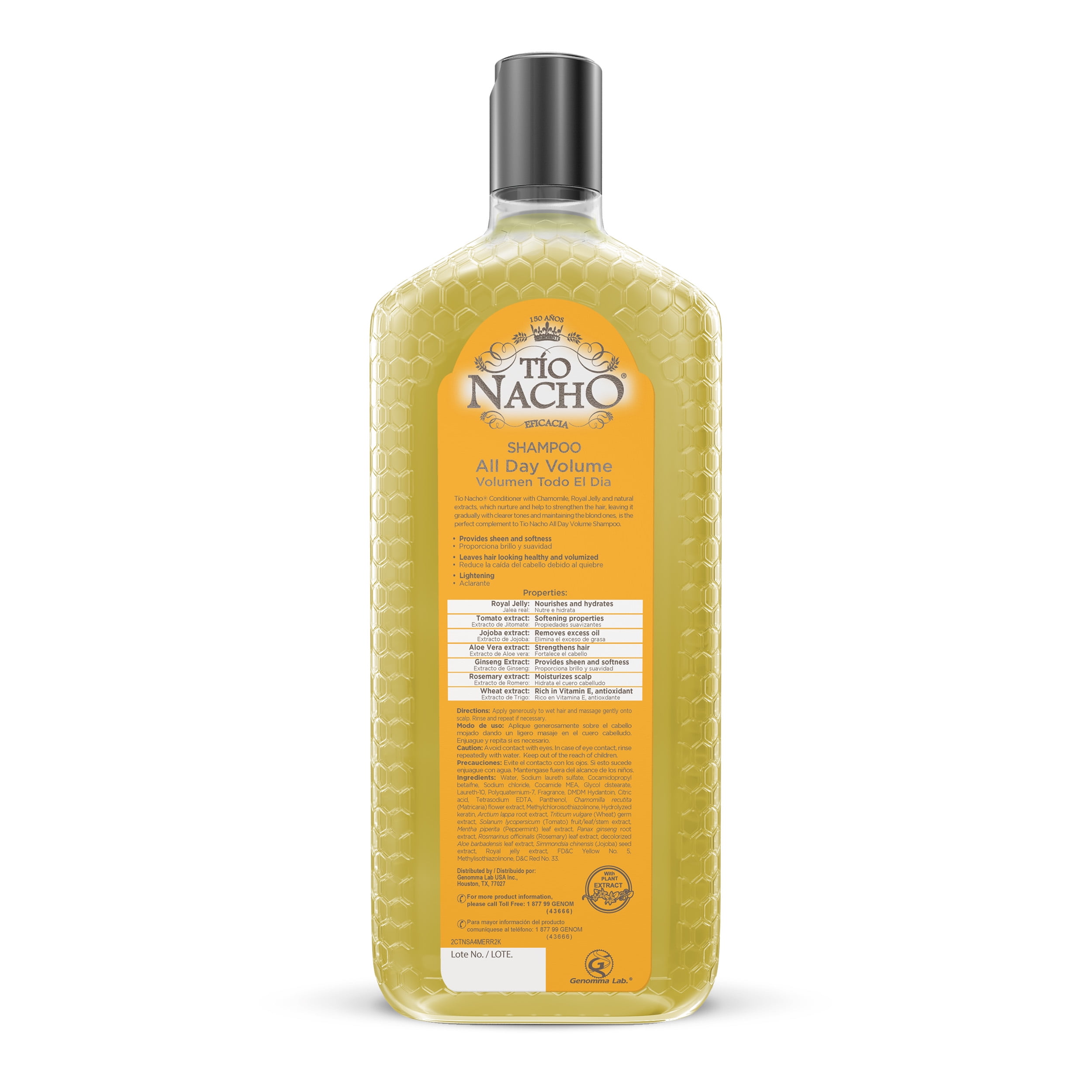 Tio Nacho All Day Volume Natural Lightening Shampoo, 14 fl oz is specially formulated to help make your hair look beautiful and fuller all day long. With Royal Jelly, botanical extracts (Tomato, Jojoba, Aloe Vera, Ginseng, Rosemary and Wheat) and moisturizers, Tio Nacho Natural Lightening Shampoo will cleanse, nourish and strengthen your hair. This will leave your hair looking healthy and feeling soft and manageable. Using Tio Nacho Natural Lightening Shampoo will nourish and hydrate your hair. It will also provide sheen, softness and remove excess oils leaving your hair looking healthy and volumized.