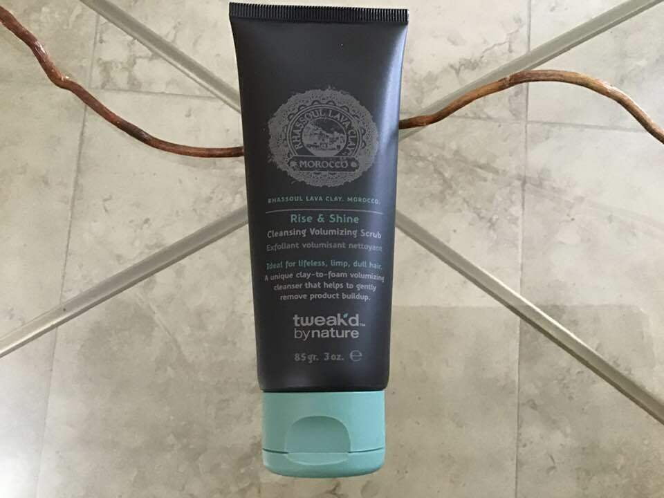 Rise and Shine Cleansing Volumizing Scrub–a clay-to-foam gently exfoliating cleanser that helps to remove product buildup from the hair and scalp. This all-encompassing deep cleanse formulation is designed to help remove excess oil and dirt from the hair and scalp. How do I use it: Use scrub to replace your shampoo once a week. Apply a teaspoon to wet hair. Gently massage until you feel the paste turn to foam, focusing on the roots. Add more water to create a thick lather. For an intensified effect, let sit for two minutes, then rinse thoroughly.Tweak-d by Nature Rise and Shine Cleansing Volumizing Scrub 3 oz
