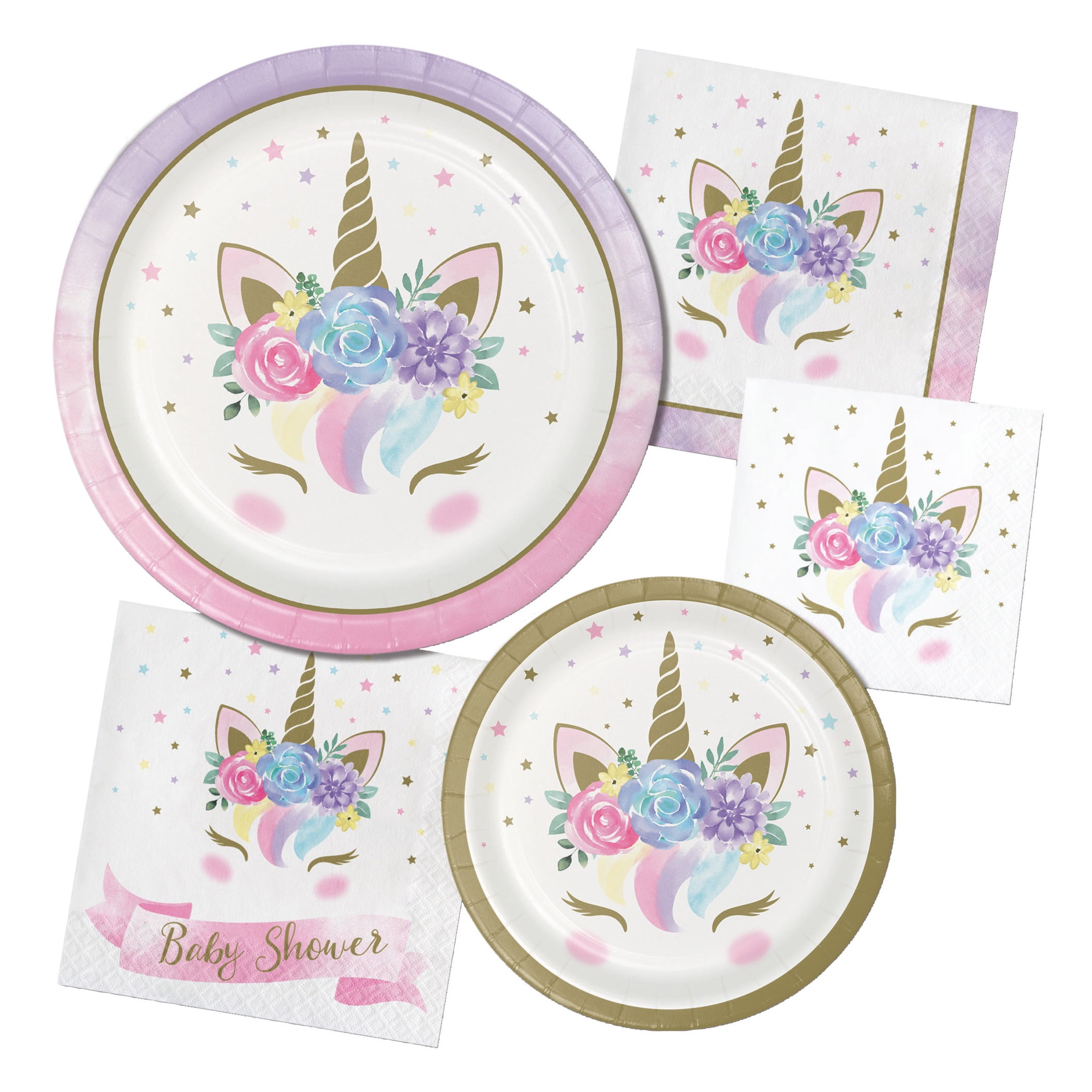 Unicorn Baby Shower Round Paper Dessert Plates 24 Count for 24 Guests