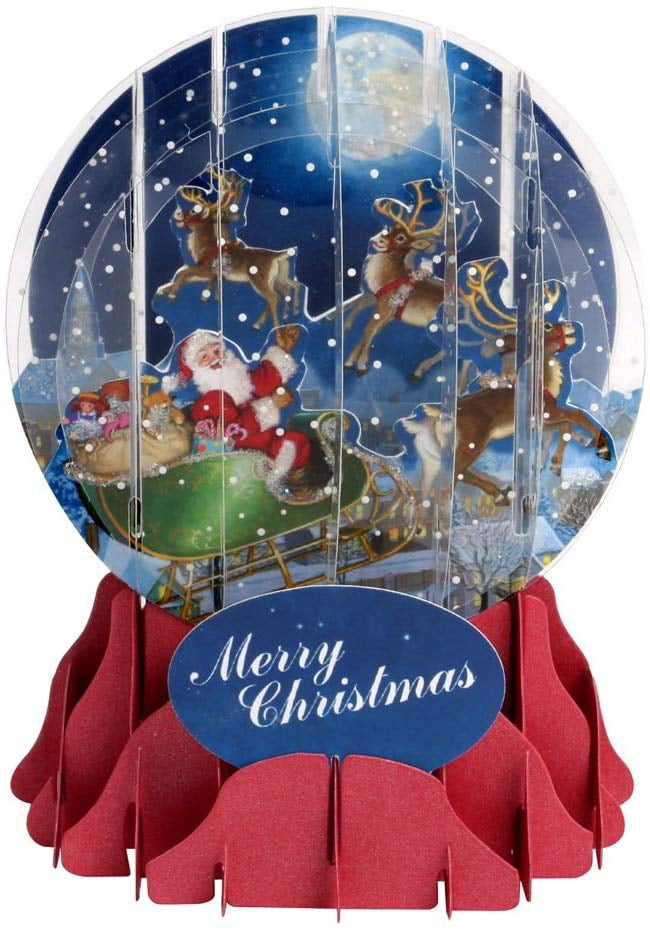 Up With Paper Santa’s Moonlight Sleigh Ride Pop-Up Snow Globe Christmas Card