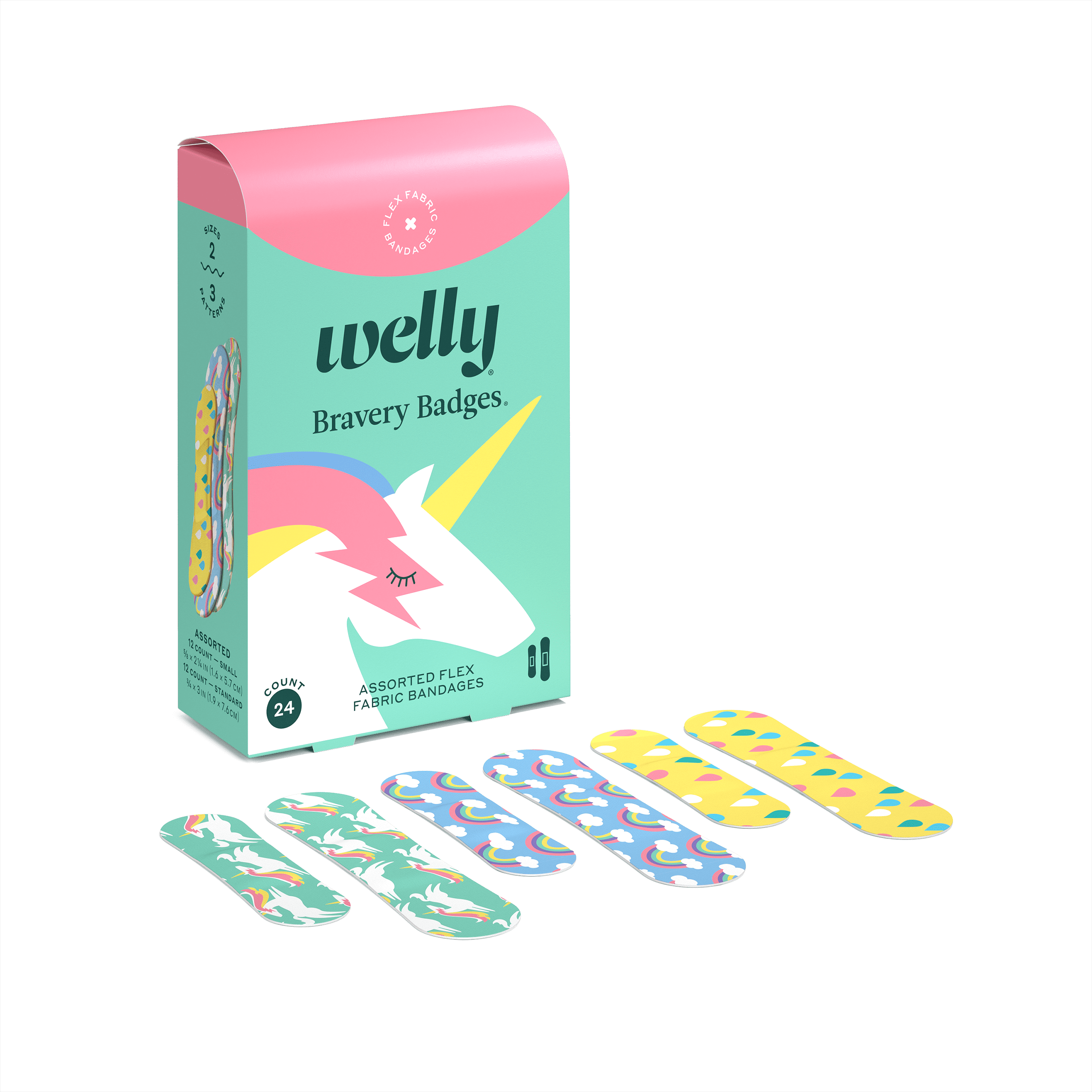 Welly Bravery Badges Assorted Flex Fabric Bandages, 48 count