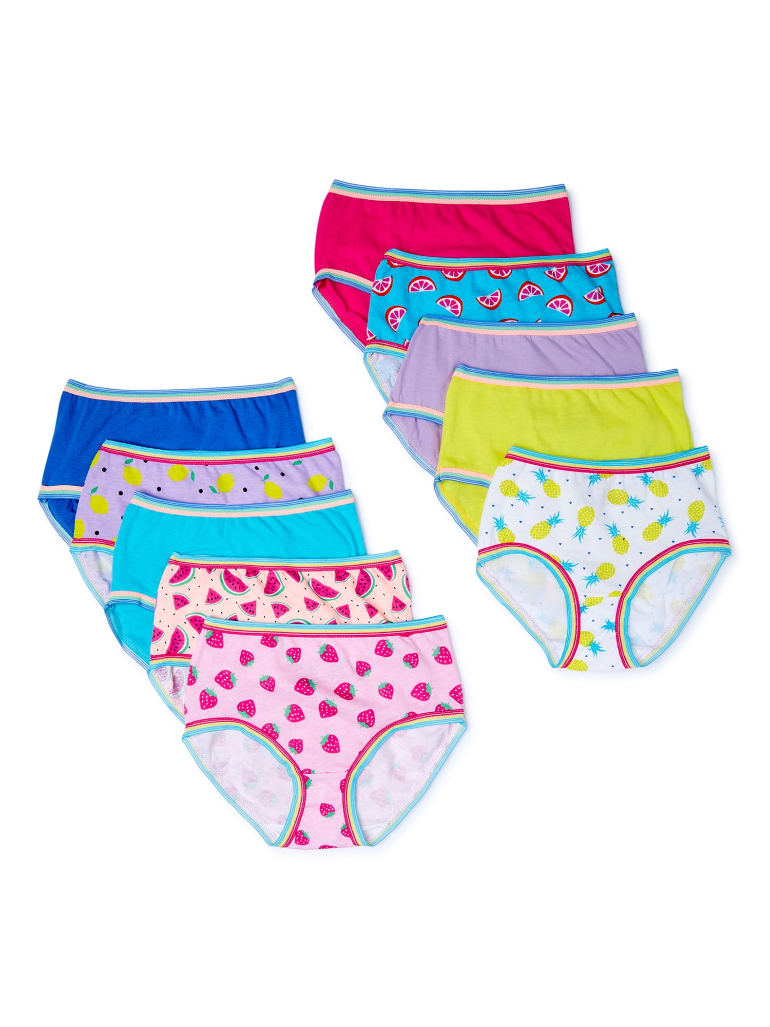 This Wonder Nation Girls Underwear 10 Pack Brief is a essential addition to her wardrobe. These briefs are designed with 100% breathable cotton and feature a comfortable fabric waistband that ensures all day comfort. This 10 piece assortment includes fun prints and fashionable solids that gives plenty of variety throughout her week. This value pack is a colorful way to meet your little one’s basic clothing needs.