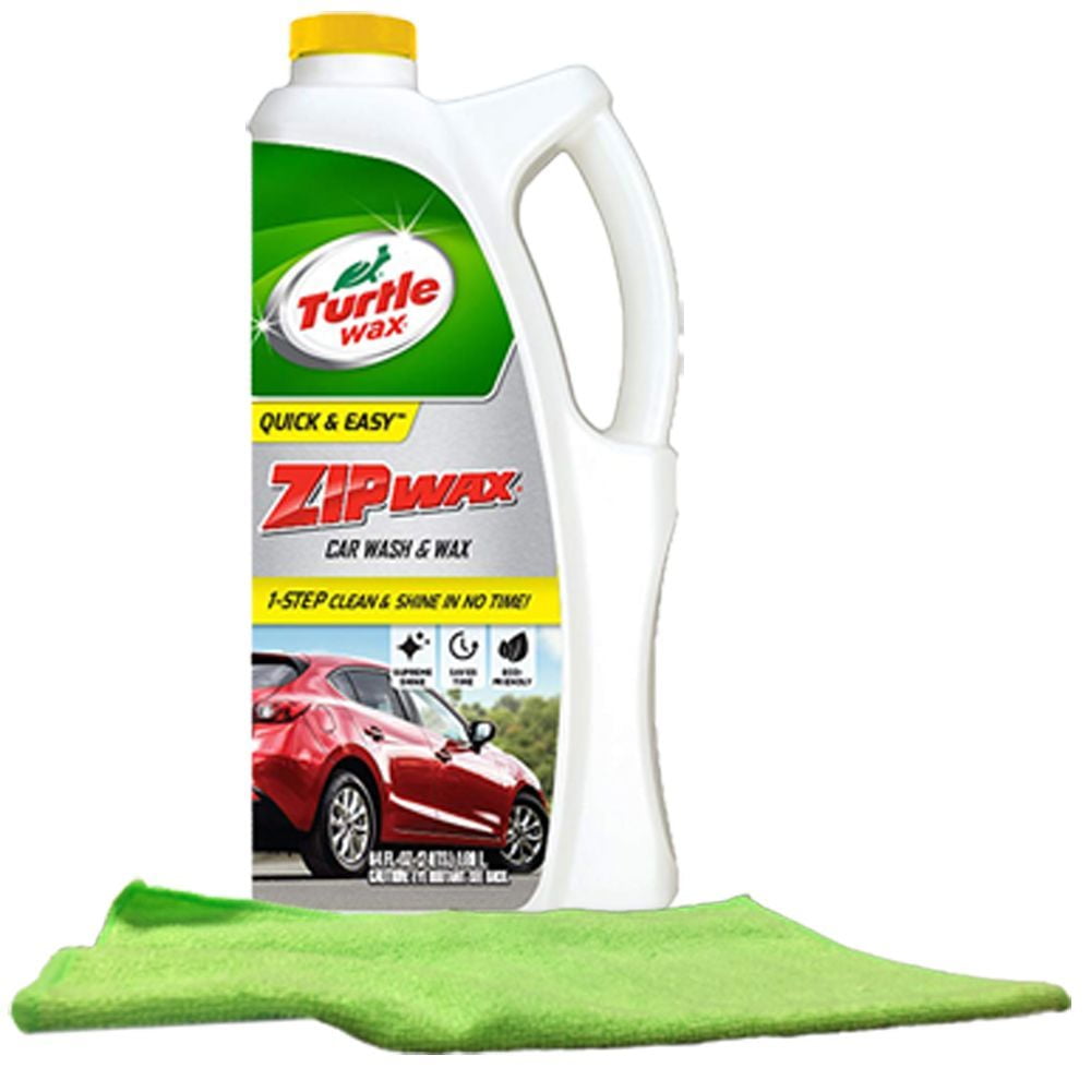 Mild rich deep-cleaning suds float away dirt and grime-leaving a sparkling Turtle Wax finish. Also great for use around the house and patio fiberglass awnings garage floors walls windows metal doors decks aluminum and vinyl siding charcoal grills sporting gear fiberglass boats and more. Zip Wax Wont Strip Wax Leaves No Spots or Streaks and is Safe For All Car Finishes. Includes: A large microfiber cloth great for polishing and buffing all paint surfaces (color may vary).