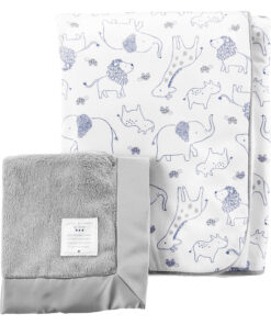 Carter’s Child of Mine 2-Piece Baby Blanket and Lovie Blanket, Neutral, Gray Safari