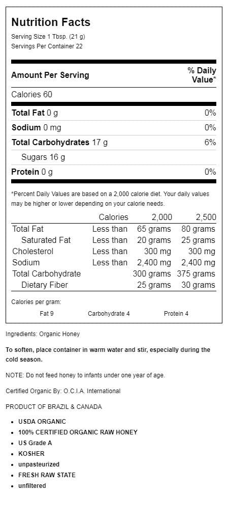 Y.S. Eco Bee Farms 100% Certified Organic Raw Honey 1 lb Paste