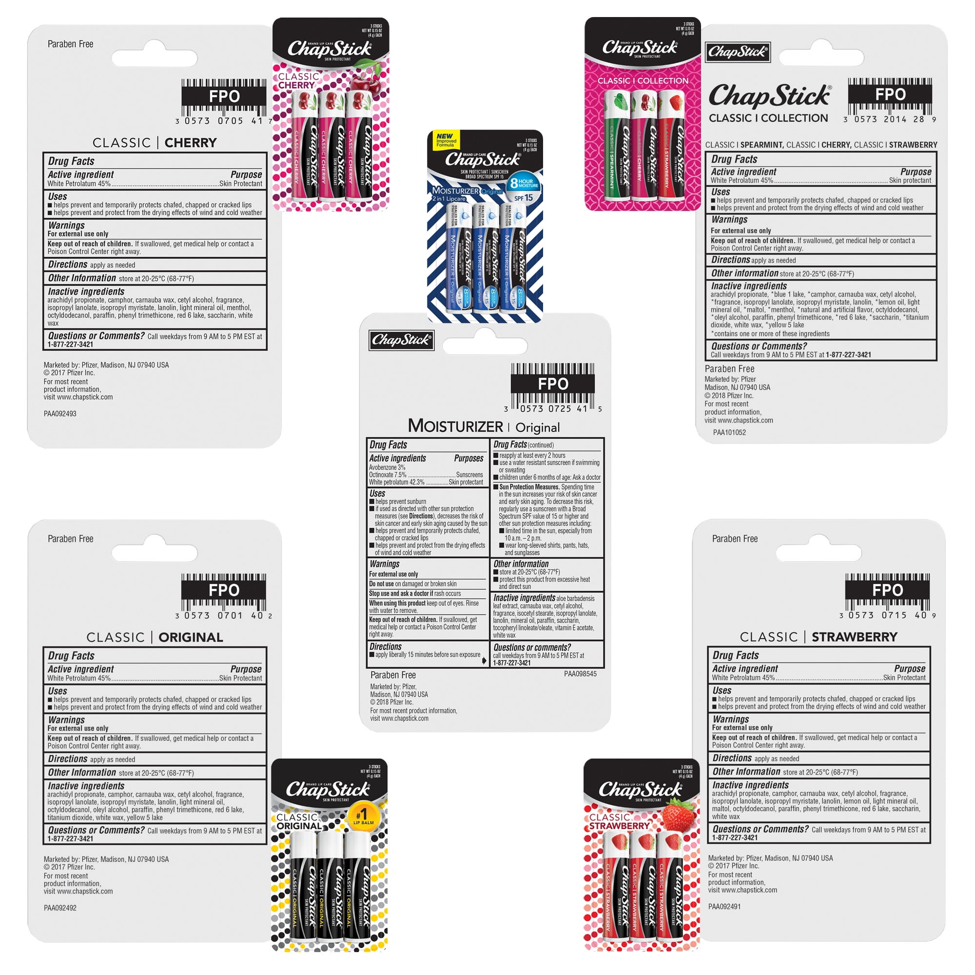 ChapStick Classic Collection Moisturizing Flavored Lip Balm Tubes, Father’s Day Gift, 0.15 Oz, 15 Pack