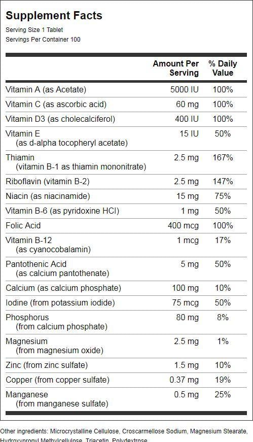 Nature’s Blend No Iron Multivitamin with Minerals Tablets, 100 Count