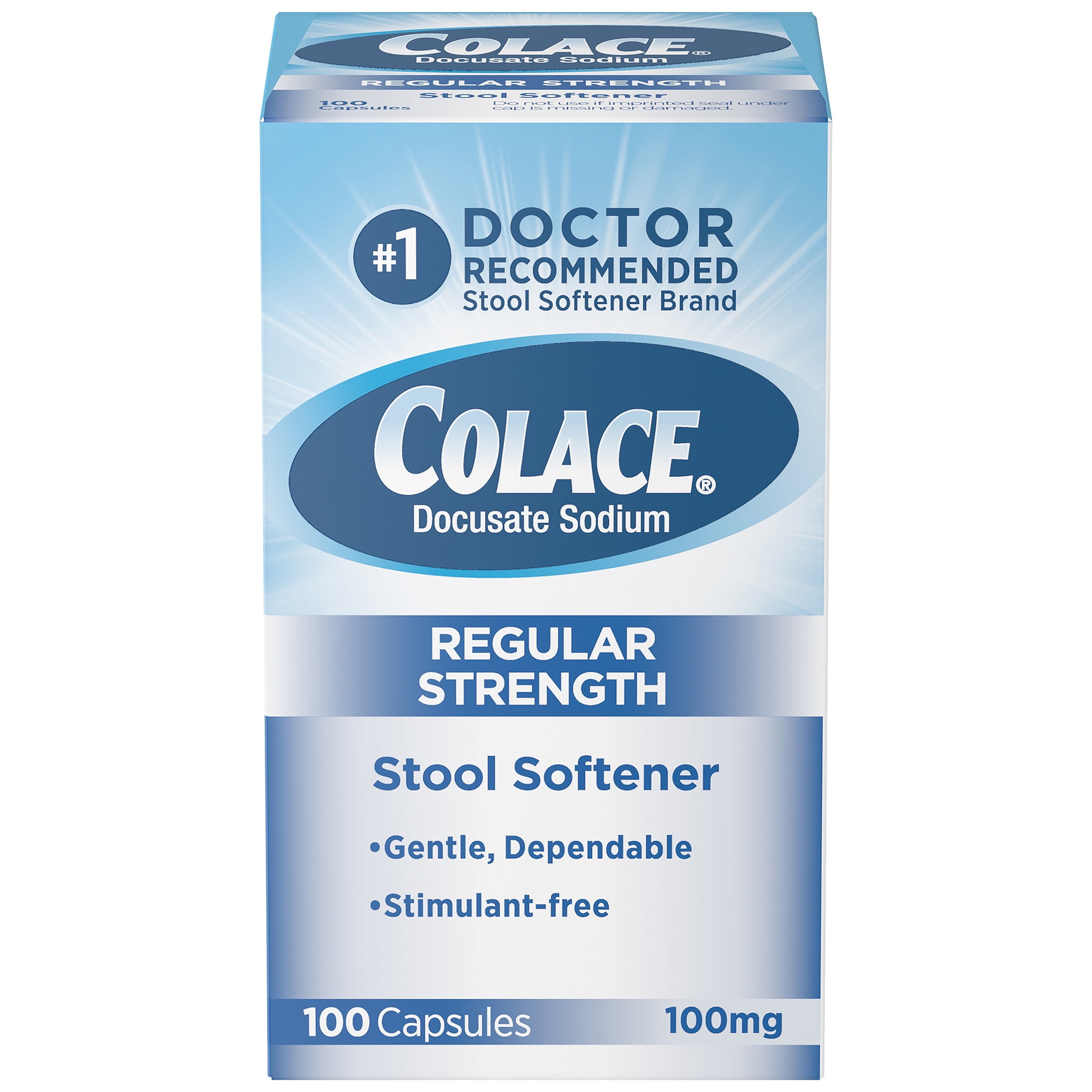Colace Regular Strength Stool Softener Capsules, 100 mg, 100 Ct