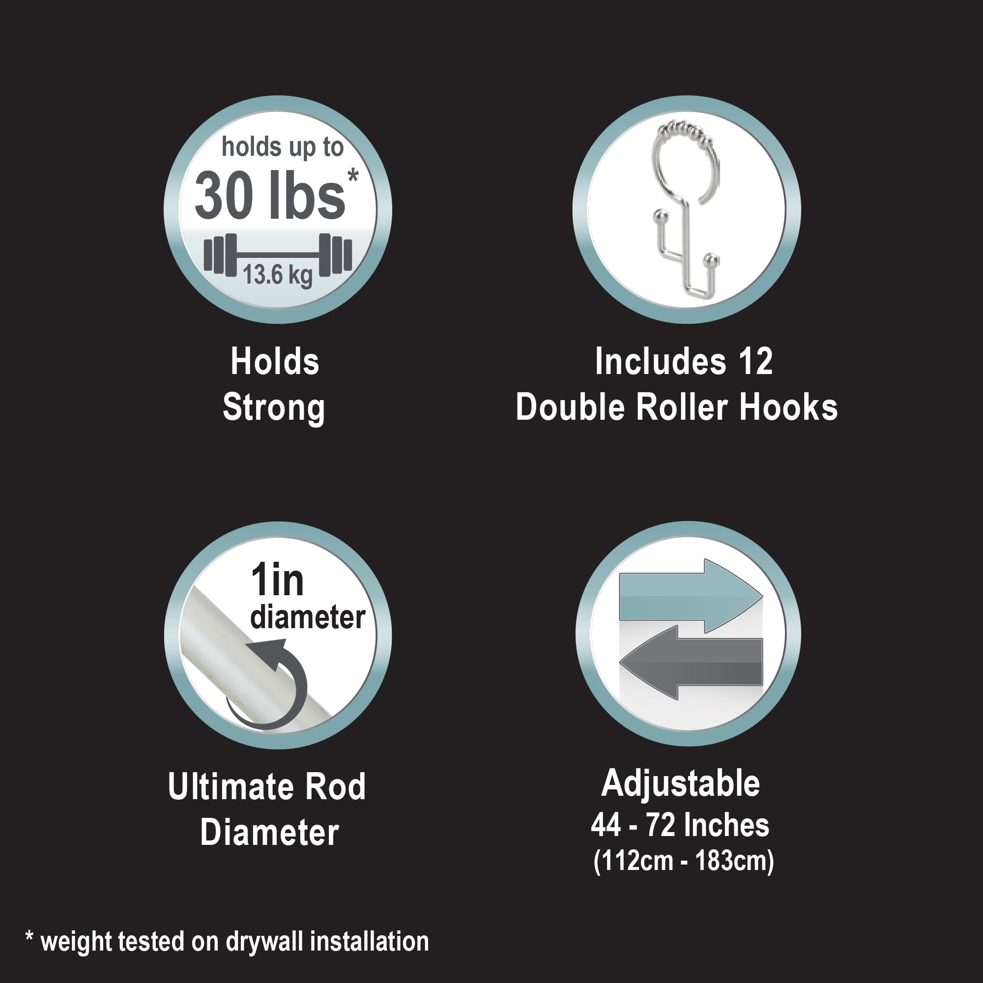 Zenna Home Rustproof Stainless Steel 44 to 72-in. All-in-One Dual-Mount Ultimate Shower Rod and Rings Set, Chrome