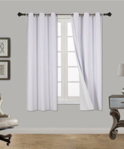(SSS) 2-PC White Solid Blackout Room Darkening Panel Curtain Set, Two (2) Window Treatments of 37′ Wide x 63′ Length Each Panel