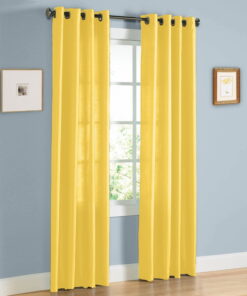 1 PANEL Nancy SOLID YELLOW SEMI SHEER WINDOW FAUX SILK ANTIQUE BRONZE GROMMETS CURTAIN DRAPES 55 WIDE X 95′ LENGTH
