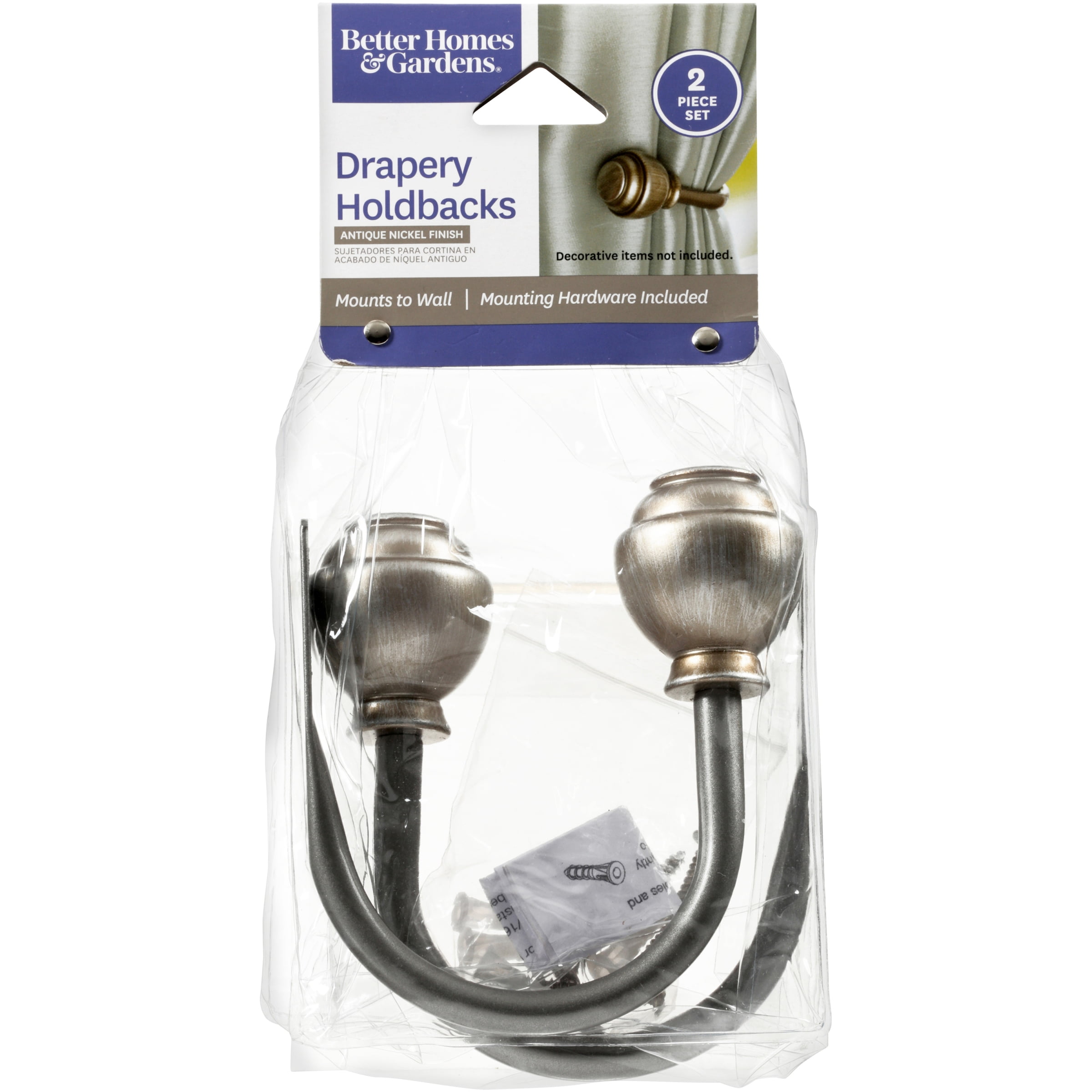 Better Homes & Gardens Drapery Holdbacks, Antique Nickel, 2 Pack