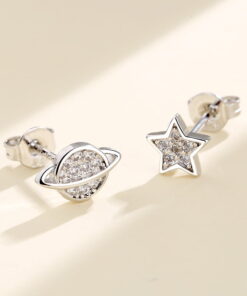 Sterling Silver Star and Planet Earrings with Swarovski Crystals