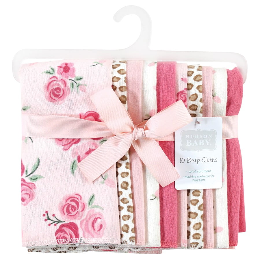 Hudson Baby Infant Girl Cotton Flannel Burp Cloths, Blush Rose, One Size